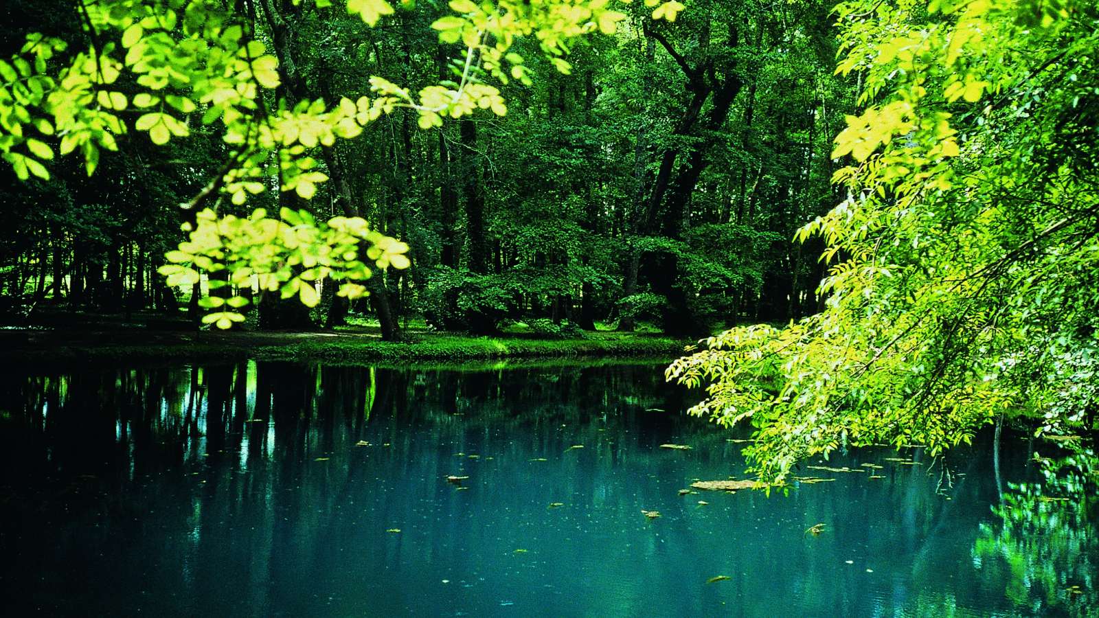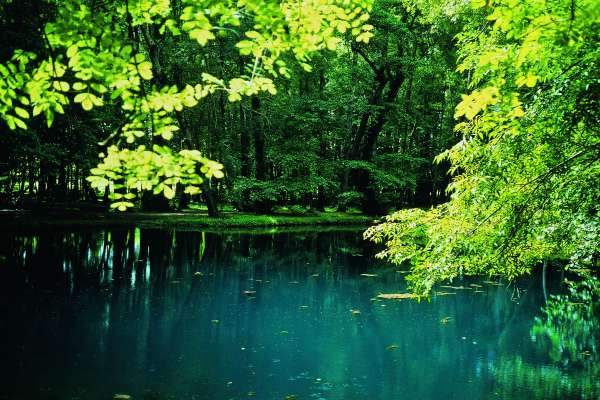 Un vénérable chêne tricentenaire marque l'allée qui conduit au cœur du sous-bois, aux mystérieuses "Fontaines Bleues", sources naturelles dont les eaux profondes, calmes et sereines présentent une coloration bleu-foncé, étrange et magique. De méandre en méandre avec la complicité des chants d'oiseaux, vous cheminerez en rêvant aux légendes qu'elles ont suscitées dans un lointain passé.