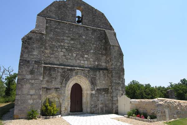 Suivre la route goudronnée qui part en face pour pénétrer dans le bois de pins et continuer sur 1,5km : vous croisez les routes de Gros Buisson et Maine Bertin mais continuez tout droit. Faire 500m et prendre à gauche à la patte d'oie, puis arrivé à la petite route goudronnée, prendre le chemin en face. Continuer pendant 1 km, remarquez alors l'église templière de Linières.