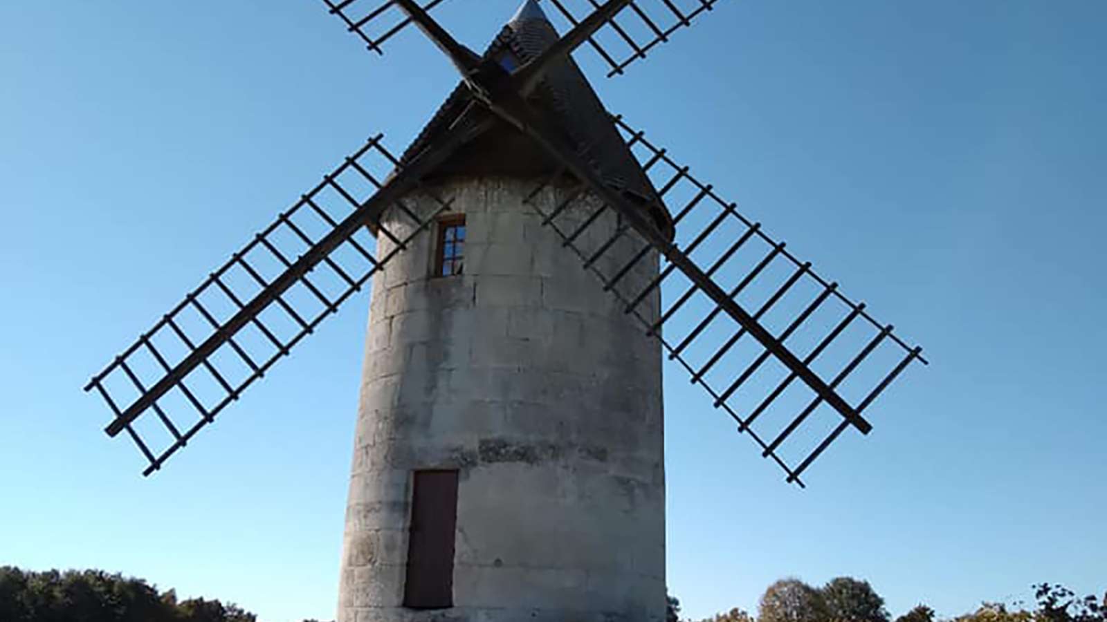 Tour en pierre de taille, construite en 1847 sur les bases d’un précédent moulin (démoli vers 1820). La tour du moulin toiture et ailes ont été restaurées en 2013. Une table de lecture a été installée à son pied. Le rez-de-chaussée accueille une collection d'outils et de caricatures saintongeaises. Non loin de là un four à pain à aussi été restauré.