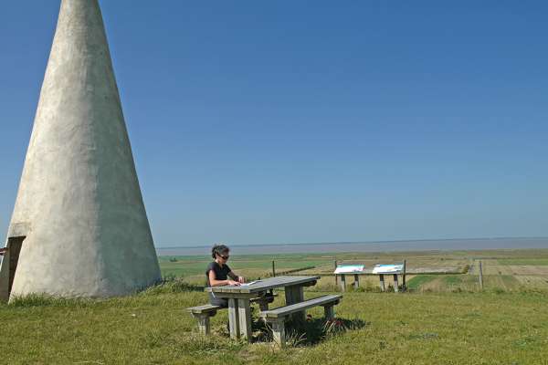 Suivre la route qui part à l'opposé du marais sur 300m et la quitter par un chemin qui part vers la gauche, faire 600m.