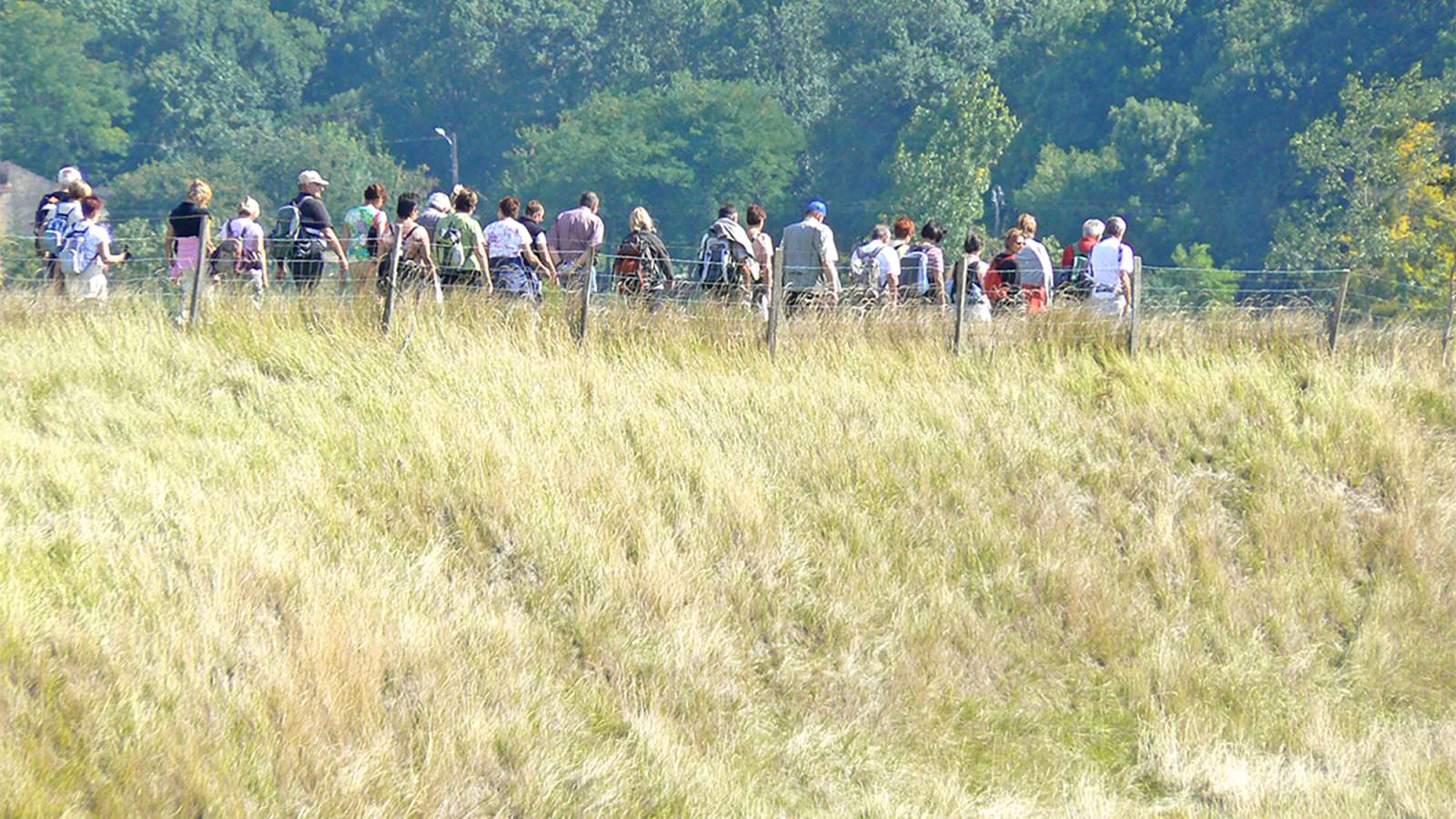 Tourner à droite dans le bois en direction de la Lande, contourner le hameau par la droite.
