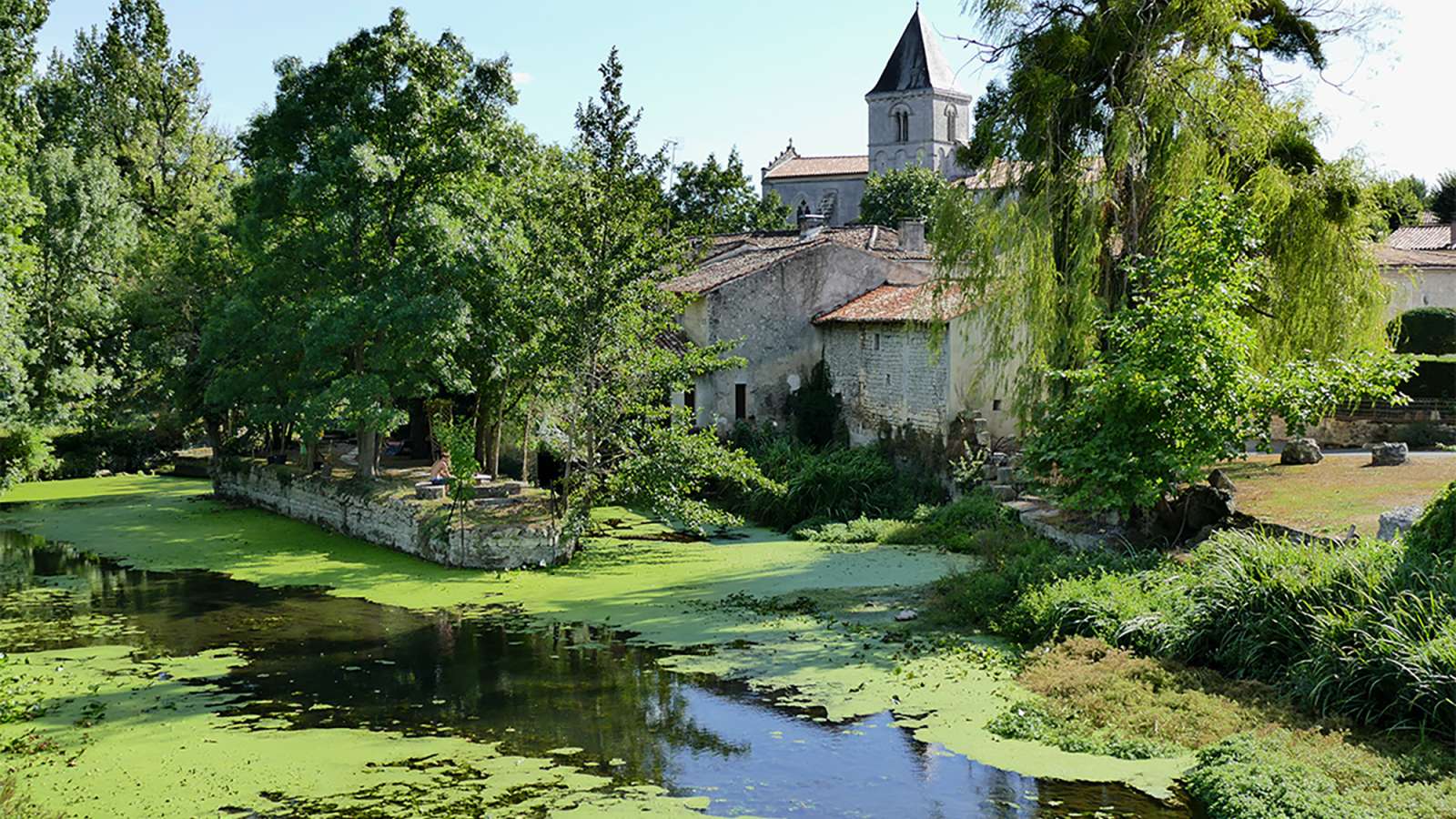 Au départ des Antilles de Jonzac, 23km sur routes de campagnes étroites et sinueuses conduisent vers de jolis villages et de remarquables éléments du patrimoine : lavoirs, moulins, chapelles, églises et châteaux notamment le château des Énigmes. Sur votre route, le hameau de St-Paul, aux belles maisons de pierre, surplombe un espace de verdure bercé par la Seugne : un lieu idéal pour une pause rafraichissante et découvrir la petite chapelle du XIIème siècle (privée), tout en charme et simplicité avec sa nef unique et son surprenant pigeonnier. Elle abrite dans la sérénité de son intérieur, des sarcophages découverts lors de travaux. À Clion, un fascinant musée artisanal et rural propose une immersion parmi les outils et décors du temps passé. Dans la cité médiévale de Pons, l’Hôpital des Pèlerins sur le chemin de St-Jacques-de-Compostelle accueille le musée archéologique Louis Lassarrade et le Donjon des expositions (ouverts à la visite selon conditions auprès de l'Office de Tourisme de Haute-Saintonge). Au départ des Antilles de Jonzac (centre aqualudique) 1) Au rond-point prendre à gauche direction le centre-ville, prendre à gauche la rue du Château d’eau, descendre la rue Taillefer et poursuivre par la rue Félix Faure jusqu’au rond-point : prendre alors avenue Faidherbe (direction Mirambeau, Montendre, St-Genis-de-Saintonge). Vous arrivez à un nouveau rond-point : prendre la direction de St-Germain-de-Lusignan, puis au rond-point suivant, continuer tout droit St-Germain-de-Lusignan. 2) À St-Germain-de-Lusignan, passer le pont et tourner à droite en direction du parking du stade, traverser le parking du stade, puis : Remonter à gauche la rue du Château, au bout prendre à droite et poursuivre jusqu’au hameau de Sauge puis de St-Paul Ou alors emprunter le chemin blanc en face le suivre vers la gauche à travers champ et traverser le hameau de Le Maigre, arrivé à la route prendre à droite et poursuivre jusqu’au hameau de Sauge puis de St-Paul. 3) À St-Paul, tourner à droite rue de la Chapelle, passer devant la chapelle et poursuivre sur la rue qui descend puis en contrebas, prendre à droite, la rue devient un chemin, le suivre jusqu’à l’intersection suivante : tourner à gauche en sortant du chemin et un peu plus loin, au carrefour, tourner à droite (route des Angevins) afin de reprendre la direction de Clion. 4) À Clion, vous passerez devant la salle des fêtes qui se trouvera sur votre droite. Continuer jusqu’au bout de cette route. Ensuite prendre à gauche (à hauteur de l’église Saint-André avant d’arriver au stop, vous pouvez aller voir le lavoir communal en quittant le parcours balisé : tournez à droite impasse de la tannerie, le lavoir est tout au bout). Arrivé au stop, vous pouvez continuer le parcours vers la droite ou faire un détour par le musée Artisanal et Rural qui se trouve juste à gauche dans l'ancien presbytère. Passer devant le cimetière et suivre la D50. Vous passerez devant la base de loisirs "Le Pédalo" au Pré Douzin. 5) À la D134 : tourner à gauche et continuer jusqu’à St-Georges-Antignac. Croisement d’itinéraires à St-Georges-Antignac avec la Rayonnante 3 vers St-Genis-de-Saintonge et l’estuaire Pour aller vers le fleuve Charente via Pons prendre à droite 6) À l’église à droite direction St-Grégoire-d’Ardennes. Faites 500m et tournez à gauche sur le chemin de chez Taconnet, à la fourche quitter la direction Taconnet et prendre à gauche traverser la rivière et remonter vers la D146. 7) À la D146 prudence : traverser pour tourner à gauche et prendre la première route à droite après une centaine de mètres puis à droite sur le "chemin du Moulin". Au carrefour suivant vous pouvez : - soit prendre à droite et faire un détour de 500m pour vous rendre à St-Grégoire-d’Ardennes et profiter des tables de pique-nique du parc. - soit prendre à gauche pour continuer sur le circuit en, faire 500m puis prendre à droite, 500m encore et de nouveau à droite pour traverser le hameau de la Salle. À la sortie, tourner à gauche direction Fléac-sur-Seugne et continuer sur la route qui serpente. 8) Chez Nolin continuer tout droit en direction de Breuil (lieu-dit). À la croix prendre à droite et continuer jusqu’à la D249. 9) À la D249, prendre à gauche et suivre la route sur 1,2km jusqu’au silo. Au croisement du silo, prendre en face direction Pons. 10) 800 m plus loin, (laisser la D249 virer à gauche) prendre en face Font Coudret, suivre le chemin qui vire à gauche pour récupérer la D249 (300m). 11) Une fois passée la champignonnière, aux premières maisons, tourner à la première à gauche (route de Potiron), traverser la voie ferrée, tourner à droite, longer la Seugne. À l’intersection, prendre à gauche rue de la glacière et passer la Seugne. Vous traverserez plusieurs petits ponts de la Seugne pour rejoindre le rond-point de St-Jacques-de-Compostelle 900m plus loin sur votre droite.