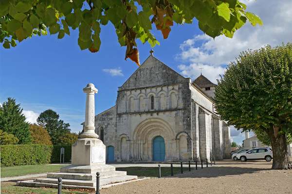 Circuit facile et accessible aux débutants (à l'exclusion de la portion de la D137 que l'on peut éviter en continuant tout droit chez Perroteau) Intérêts du circuit : L’église de Mosnac date des XIIe et XVe siècles. Cet édifice de style roman est voué à Saint Saturnin. Premier évêque de Toulouse, il est martyrisé au IIe siècle de notre ère. À l’intérieur les chapiteaux et modillons sont ornés d’animaux fantastiques, les aigles et les sirènes y côtoient le centaure et les amoureux. Une légende raconte que la cloche de Mosnac éloigne les orages... On note à l'entrée du bourg, un curieux petit édifice. Notre-Dame-des-Champs, petit monument de forme cylindrique, se coiffe d'un dôme de pierre surmonté d'une statue de la Vierge. La porte d’entrée, en plein cintre, est agrémentée de pilastres surmontés d’un fronton en arc de cercle. L’un des vitraux de la chapelle représente un semeur dans un champ jetant ses grains à la volée sous le regard protecteur d’une Vierge à l’Enfant. Le château de Favières : Les terres de Favières appartiennent au milieu du XVIe siècle à la famille de La Mothe-Fouquet, puis passent aux mains de Jean de Candelay. Au début du XVIIIe siècle, Pierre de Foix et Jean de Saint Mauris en font l’acquisition ; le château reste dans la famille Saint-Mauris durant un siècle. Entouré de vastes dépendances remaniées, le château offre un grand corps de logis flanqué de deux tourelles carrées couvertes d’ardoises. Tel qu’il se présente, malgré une apparente restauration au XIXe siècle, le château de Favières demeure un exemple intéressant d’édifice du XVIIe siècle. Devant la mairie, on peut voir un "travail", outil rectangulaire qui servait autrefois à immobiliser les grands animaux domestiques, chevaux et bœufs, afin de les soigner ou de les ferrer. L'animal placé dans le "travail" était maintenu par le harnais, ce qui facilitait ainsi le travail du maréchal-ferrant ou du vétérinaire. Autre départ possible du bourg de Mosnac.