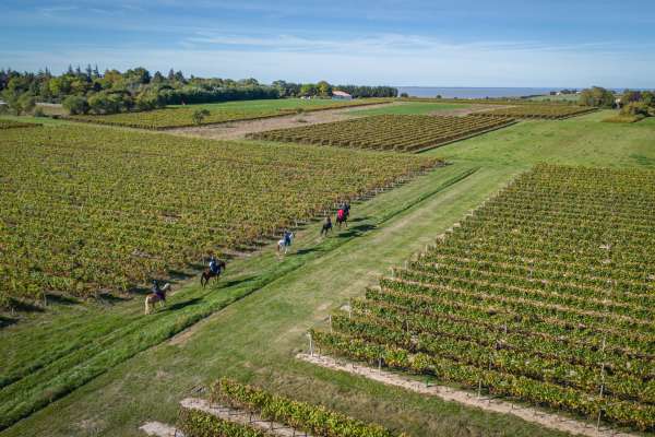 On remet le pied à l’étrier ! En quittant Saint-Martin, vous apercevez le château de la Magdeleine. En chemin vers la Clotte, vous pourrez vous arrêter à Montguyon pour y visiter son château perché et la Maison du Kaolin, lieu consacré à l’histoire de l’argile kaolinique. Avant de plier bagage pour revenir à votre point de départ, vous pouvez passer la nuit au Domaine de la Baleine Bleue.
