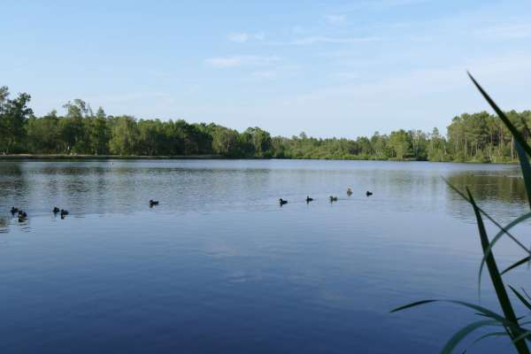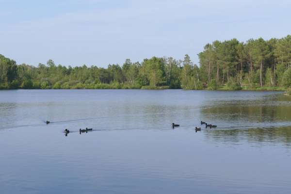 Dans son écrin de pins, ce lac de 10 hectares est un lieu idéal pour la pratique de la pêche, les promenades, la baignade, la pétanque et les sports nautiques. C'est le point de départ de nombreux sentiers de randonnées pédestres. Son cadre naturel en fait aussi un site privilégié pour la pêche, l'observation de la faune et la flore. Sur place également, jeux et manège pour enfants, la base de loisirs Montendre Ville Club en période estivale et Mysterra®, le parc aux 7 labyrinthes.