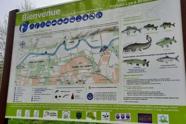 Vous prospecterez ce parcours en embarcations motorisées (bateaux) ou non motorisées (float-tubes, canoës-kayaks). Long de 4,8 km, il débute à la cale de mise à l’eau située à la halte nautique du Port-du-Lys en rive gauche et se termine au pont de Brives-sur-Charente. Il est géré et entretenu par l’AAPPMA « Les Pêcheurs Saintongeais », l’Agence Fluviale du Conseil Départemental et la commune de Salignac-sur-Charente.