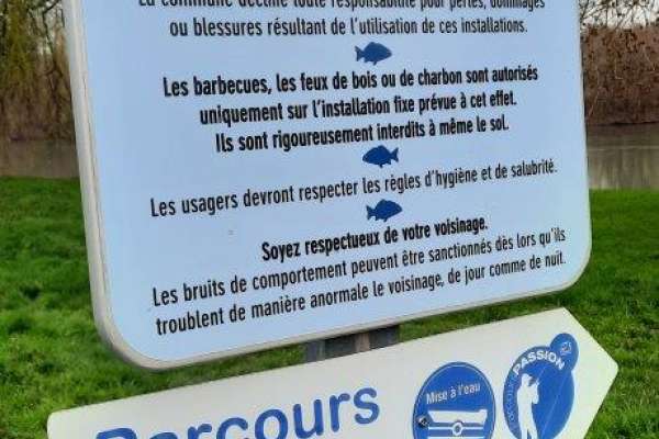 Carte de pêche obligatoire. 4 lignes maximum/pêcheur. 3 carnassiers prélevables/jour/pêcheur dont 2 brochets maximum (hors silures et perches). Tailles Légales de captures : brochet entre 60 et 80 cm (fenêtre de capture), sandre 50 cm, black-bass 30 cm. Pêche du brochet autorisée du dernier samedi d’avril au dernier dimanche de janvier. Pêches aux leurres (à l’exception de certains modèles), au vif et au poisson mort interdites pendant la fermeture de la pêche du brochet. Pêche de la carpe de nuit autorisée sur le secteur dédié., Petite guinguette à votre disposition en Juillet/Août.