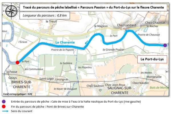 C’est l’un des plus beaux parcours de pêche de la basse vallée du fleuve Charente. Il s’adresse aux passionnés de pêche sportive des poissons carnassiers : brochets, sandres, perches, black-bass et silures. Vous prospecterez ce parcours en embarcations motorisées (bateaux) ou non motorisées (float-tubes, canoës-kayaks). Long de 4,8 km, il débute à la cale de mise à l’eau située à la halte nautique du Port-du-Lys en rive gauche et se termine au pont de Brives-sur-Charente. Il est géré et entretenu par l’AAPPMA « Les Pêcheurs Saintongeais », l’Agence Fluviale du Conseil Départemental et la commune de Salignac-sur-Charente.