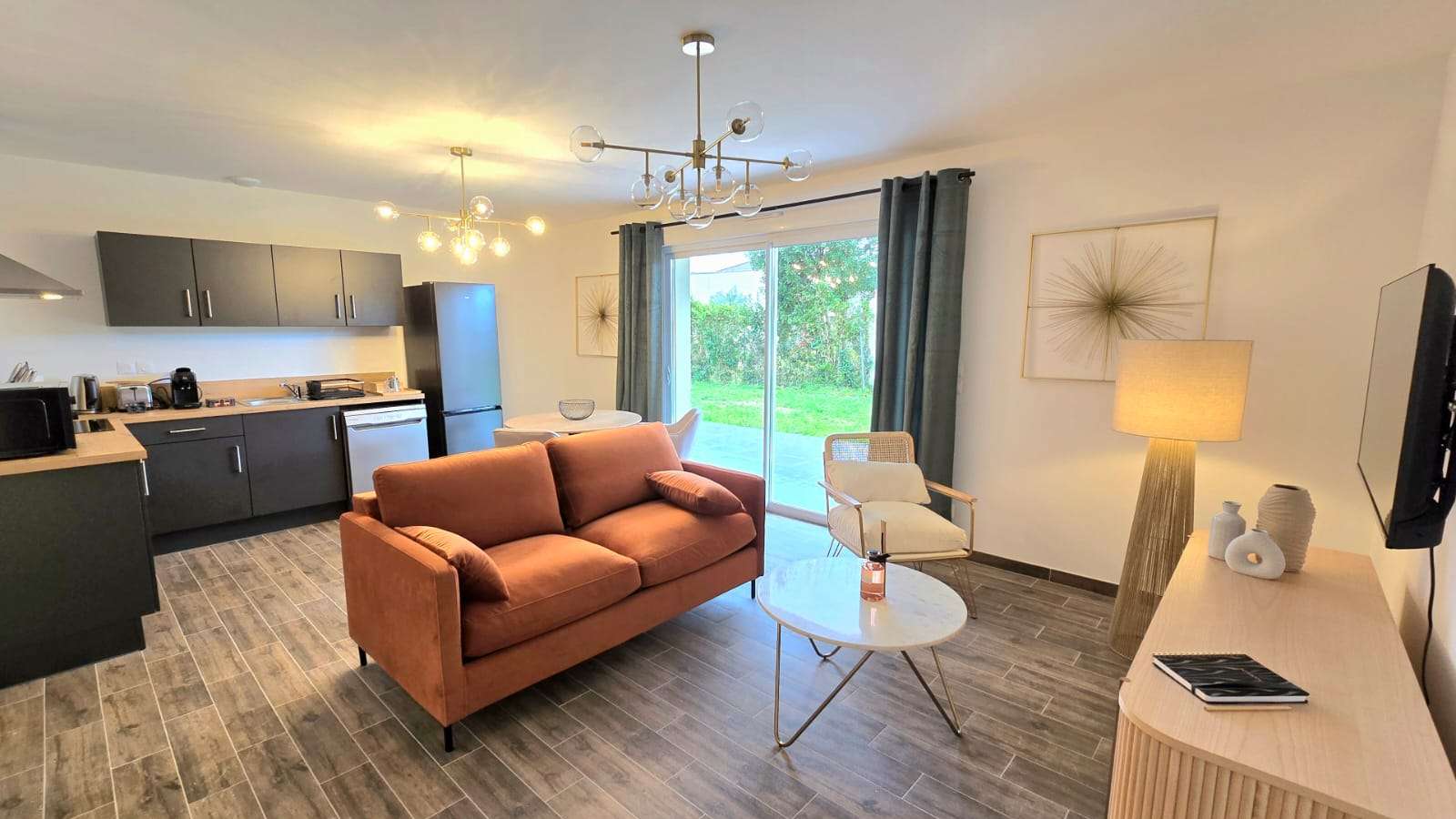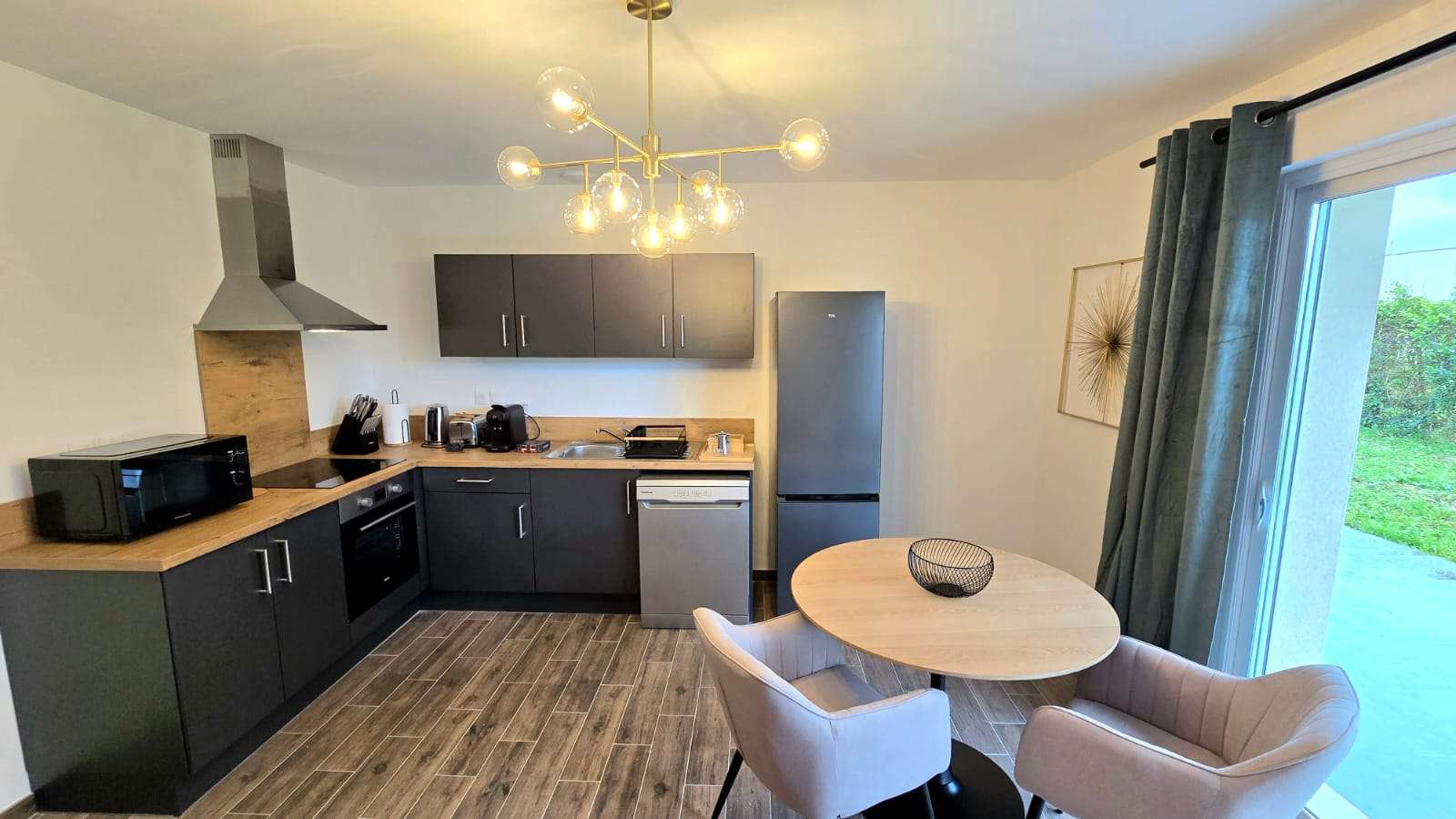 A 5 minutes du marché de Jonzac dans une rue calme, les maisons offrent un confort moderne (lave vaisselle, lave linge, literie 160), ameublement et harmonie des couleurs.