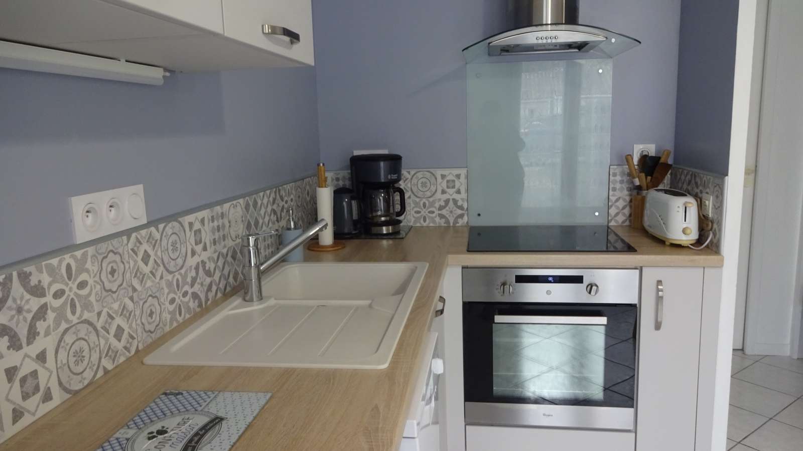 Le logement compte une pièce de vie avec cuisine équipée et coin salon, une chambre, une salle d'eau et un wc séparé.