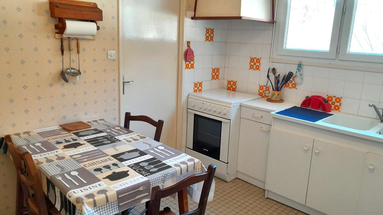 Logement comprenant une cuisine indépendante équipée d'un micro-ondes, d'un four, d'une hotte, d'un salon avec un canapé 2 à 3 places et 2 fauteuils, une télévision, une chambre double avec un lit de 140.