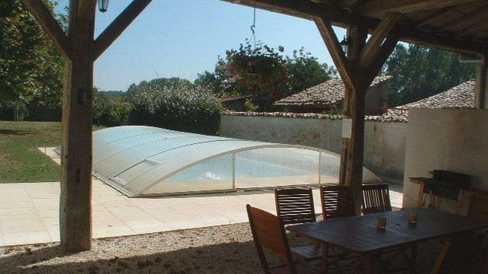 Dans un petit hameau, gîte indépendant rénové en 2009. Cuisine avec cheminée. Séjour/salon avec cheminée. Salle d'eau/WC. A l'étage, 3 chambres: (1 lit 2 personnes), (1 lit 2 personnes, 1 lit 1 personne en 120), (1 lit 2 personnes, 1 lit 1 personne). Salle de bains avec douche séparée, WC. Jardin clos privatif, préau, 8 transats, piscine, couverte, privative, sécurisée, sous abri (9m x 4.5m), accessible selon conditions climatiques et restrictions administratives. Chauffage central payant (forfait). Lit bébé/chaise haute/baignoire à disposition. Tous les modes de paiements (excepté chèque bancaire) et l’assurance annulation sont proposés pour un contrat établi par le service réservation.