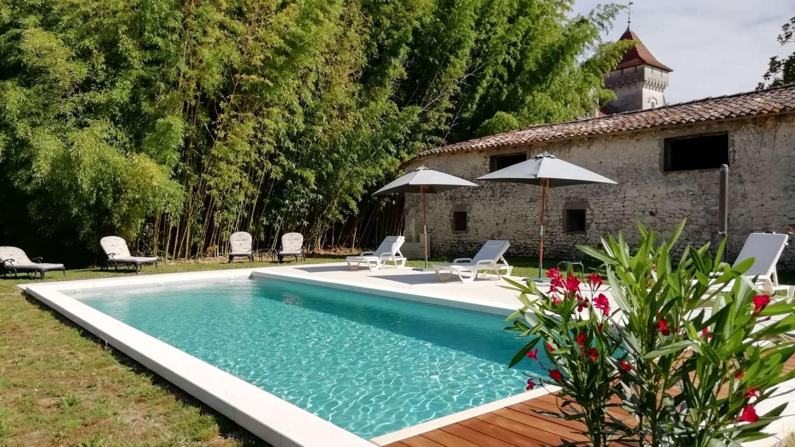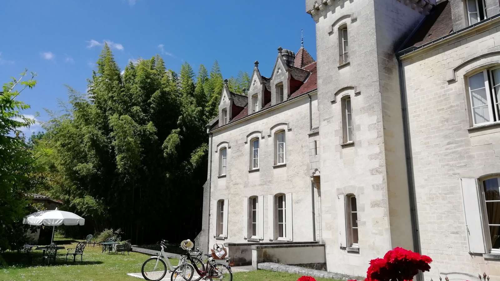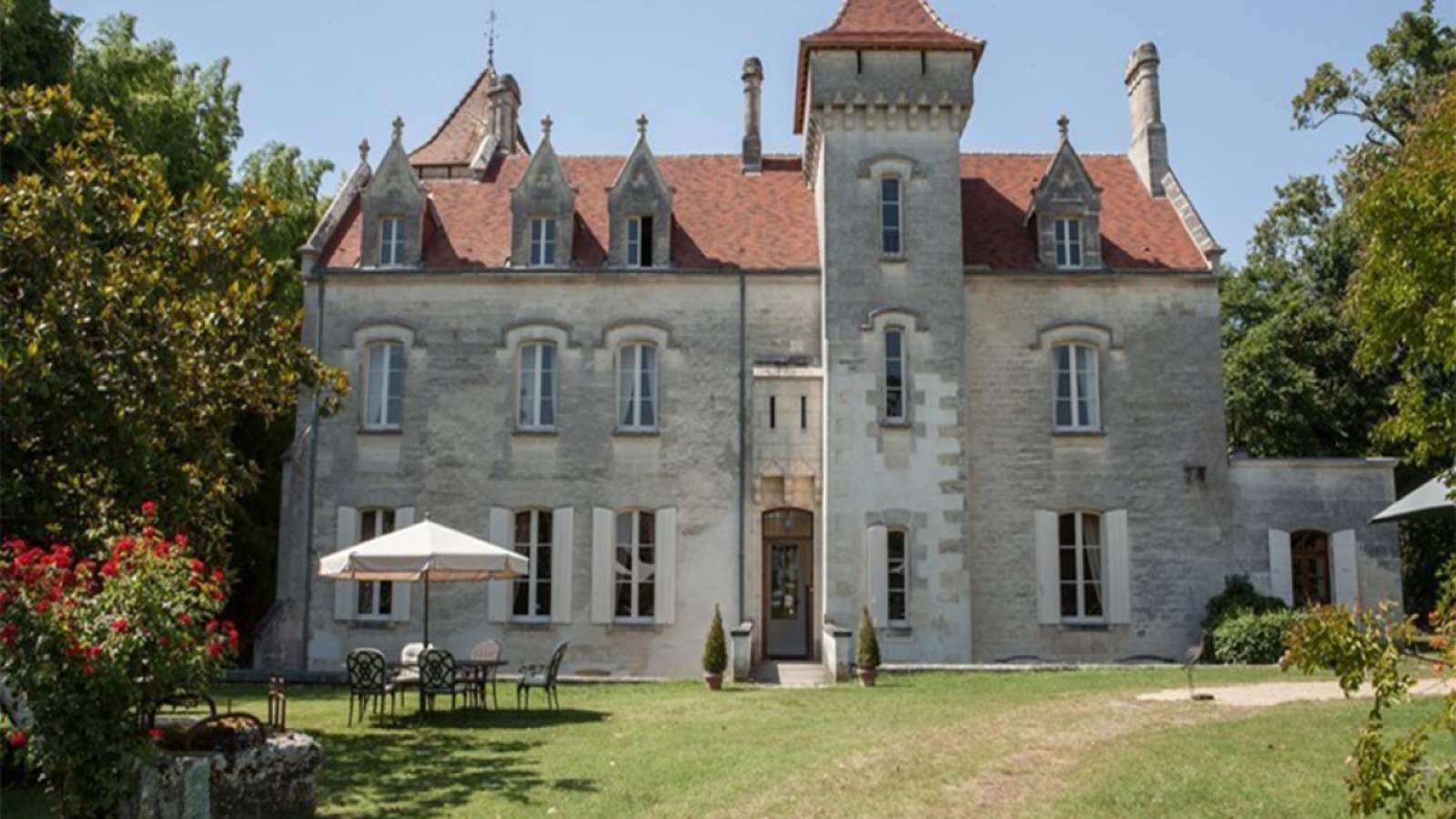 Label Bienvenue au Château C'est au bout d'une longue allée que vous entrez dans l'univers d'une vieille maison de famille, un élégant et confortable château de style XVe siècle remanié au XIXe. Idéalement située au milieu du vignoble du Cognac, balayée par la brise océane, cette belle maison d'hôtes de charme entièrement restaurée vous ouvre grande sa porte le temps d'un week-end en amoureux ou d'un séjour découverte: vous serez surpris de l' étonnant paysage vallonné des rives du plus large estuaire d'Europe. Au départ de St-Fort-sur-Gironde, de nombreuses idées de balades pédestres dans la campagne avoisinante sur le GR360 ainsi que plusieurs activités sont à votre disposition : l'école de voile à Port Maubert, jardin remarquable à 4 km, le port de plaisance de Mortagne sur Gironde. Talmont et sa prestigieuse église romane fin XIème siècle. Situé à 30min de Royan et des plages de la côte atlantique, visitez les grottes de Meschers-sur-Gironde, flâner dans la ville de Royan, remarquable reconstruction année 50 et sa très longue plage, une ville animée , puis le sentier des douaniers de Pontaillac à St-Palais-sur-Mer et dégustez les mets locaux qui sauront parfaire votre séjour.