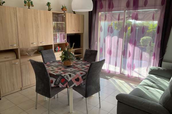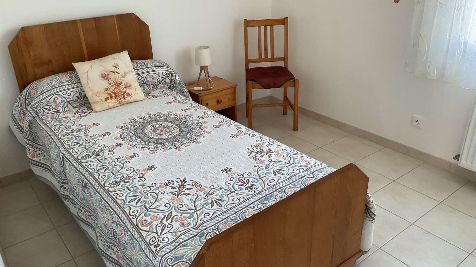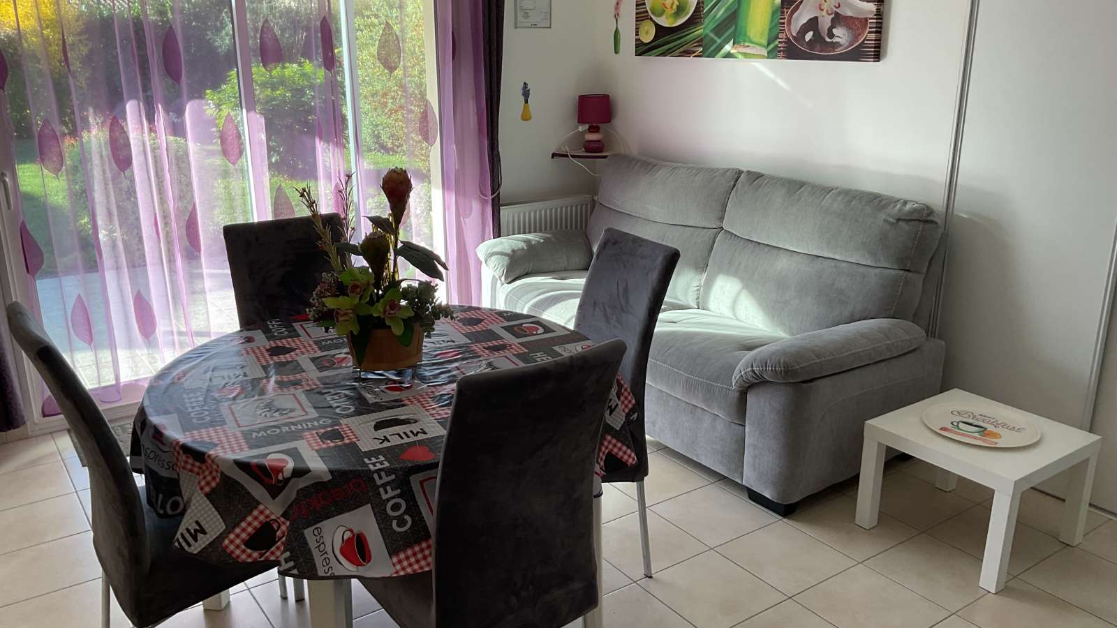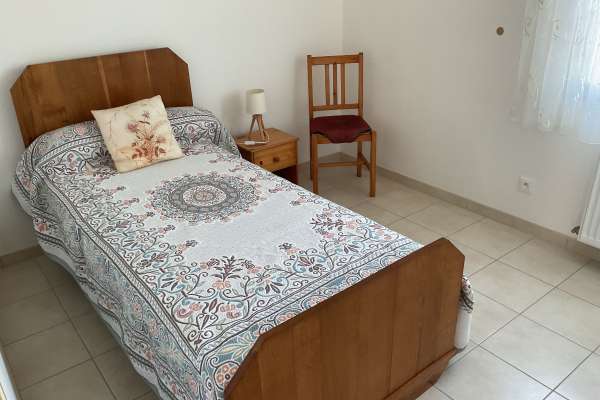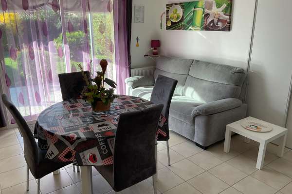 Maison de plain-pied au rez-de-chaussée située à proximité du centre-ville Comprenant une cuisine équipée avec entre autres un four, un micro-ondes, un grille-pain, une cafetière, un lave-vaisselle, un séjour avec télévision, deux chambres l'une avec un lit de 140, l'autre avec un lit de 90. À l'extérieur, un jardin avec terrasse, un parking et un garage.