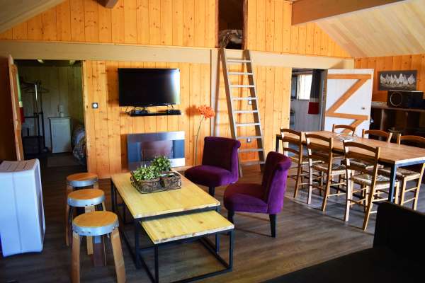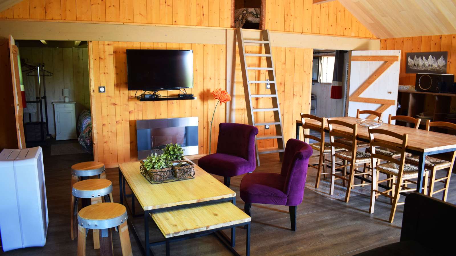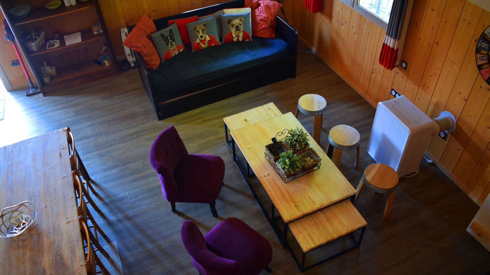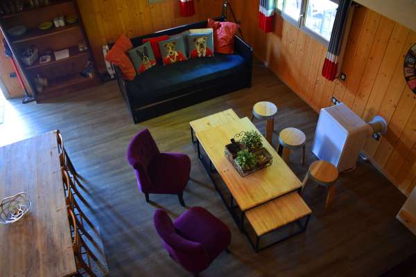 Partager des moments en famille ou entre amis dans notre nouvelle cabane pour six personnes. Spacieuse, confortable, laissez vous séduire par son atmosphère boisée. Idéal pour un couple de curistes. Elle comprend une chambre avec 1 lit de 160 cm, une salle d'eau avec douche, toilettes, lavabo, une mezzanine avec 2 lits de 90 cm, une cuisine (table à induction, réfrigérateur/congélateur, cafetière Senseo, bouilloire, grille-pain, micro-onde multifonctions), un salon avec lit gigogne, une télévision à écran plat 110 cm, une terrasse et table de jardin, chauffage et climatisation. Les arrivées sont à partir de 16h et les départs avant 10h30.