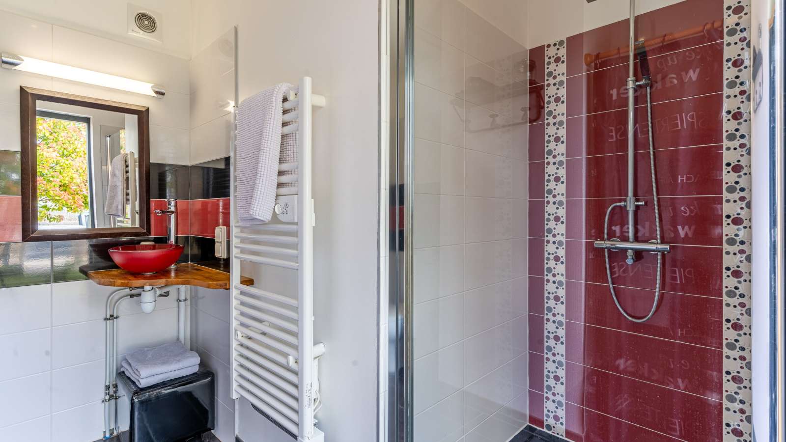 Une chambre avec un lit 160. À votre disposition, douche et WC privatif, kitchenette équipée privée. Laverie commune avec lave-linge, vélos, salon de jardin, accès Wifi.