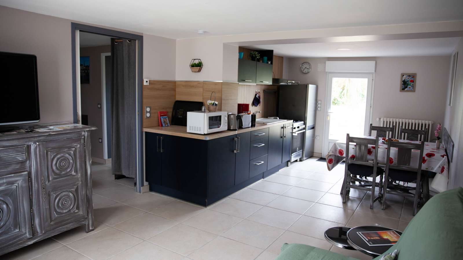 Appartement au rez-de-chaussée, et de plain pied situé à moins de 3 km des thermes Calme et nature 1 km du centre-ville.de Jonzac Comprenant un coin cuisine équipé notamment d'un micro-ondes et d'un frigo combi congélateur, un séjour et une chambre séparée. À l'extérieur, parking, terrasse privative, barbecue et jardin commun avec 3 autres appartements Situé à 1,5km du centre aqualudique des "Antilles de Jonzac" Accès PMR (labellisé Tourisme et handicap)