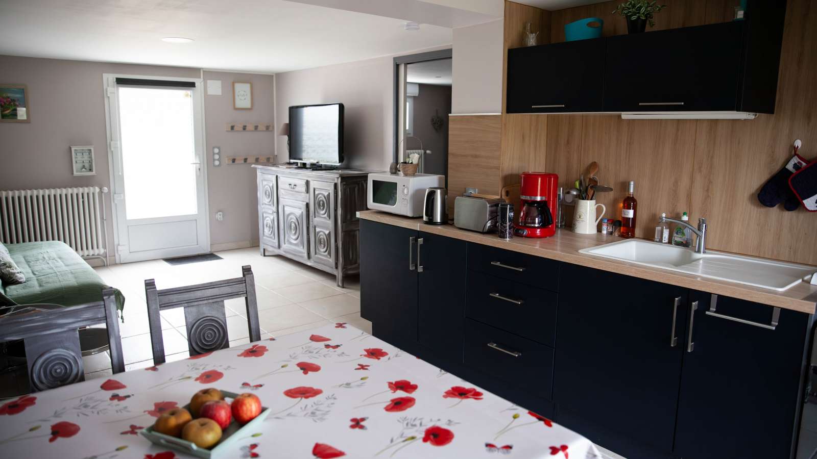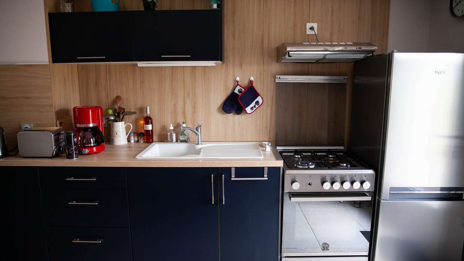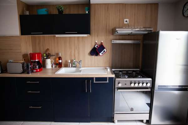 Comprenant un coin cuisine équipé notamment d'un micro-ondes et d'un frigo combi congélateur, un séjour et une chambre séparée.