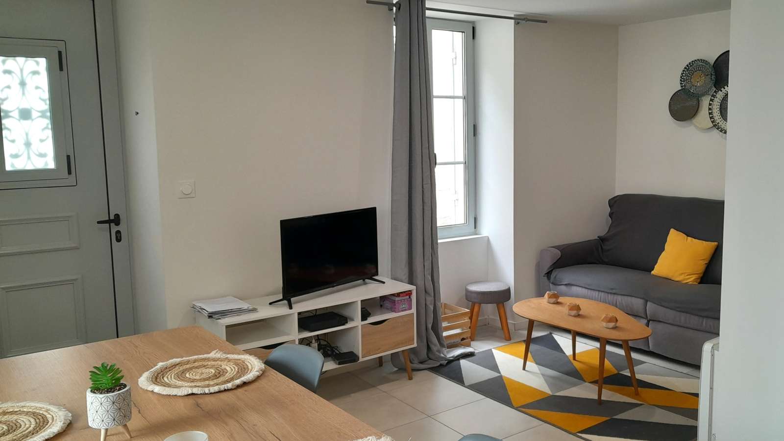 Maison entièrement rénovée par artisans, idéalement située en cœur de ville et à proximité des espaces naturels jonzacais. Cette jolie maison du centre historique a été restaurée avec goût et souci du confort. Spacieuse avec près de 50 m2 de superficie, elle offre au rez-de-chaussée un salon/cuisine intégrée et à l’étage une chambre lumineuse et sa salle d’eau. Les plus de la location pour 2 personnes : linge fourni, lit fait à l’arrivée, nombreux équipements de qualité : lave-linge, aspirateur dyson, canapé relaxant.