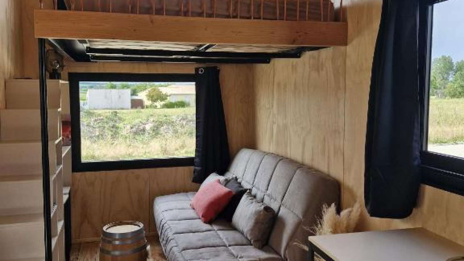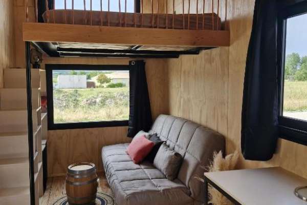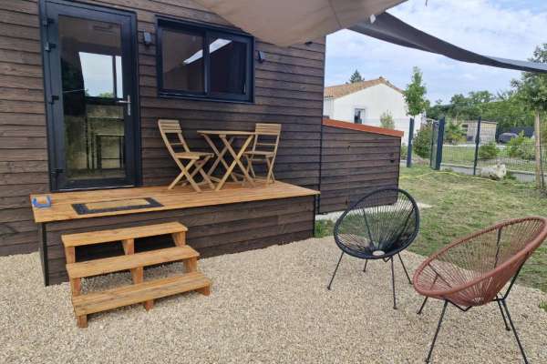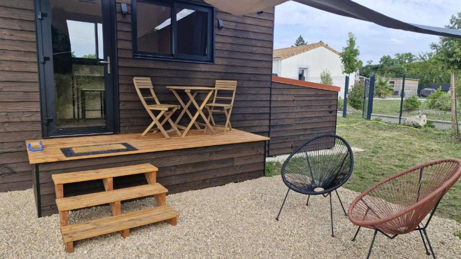 Tiny House réalisée en 2024 sur mesure pour donner un esprit chaleureux et aux couleurs du Cognac et de nos alambics. Cette Tiny House concue pour 2 à 4 personnes permet de passer un nuit ou plus dans un cadre insolite et chaleureux aux couleurs du Cognac et de ses alambics. Située dans un village de campagne au bout d'une impasse, le calme est assuré pour se ressourcer. Une terrasse permet de déjeuner ou dîner dehors, se reposer tranquillement sur un transat ou prendre un apéritif local sur le salon de jardin. Il est possible de se faire une petite grillade au coucher du soleil. Tout est fonctionnel et à disposition.