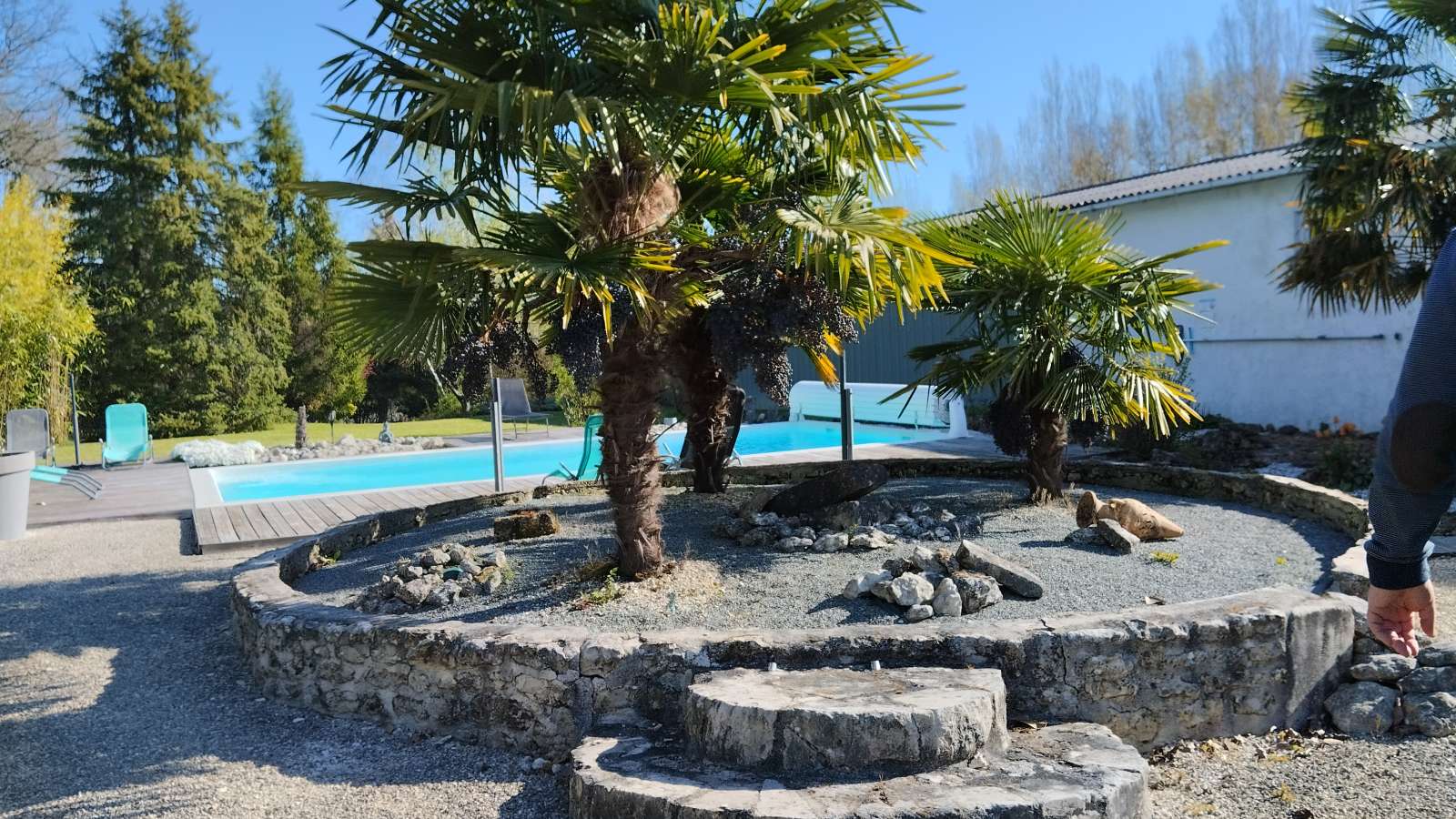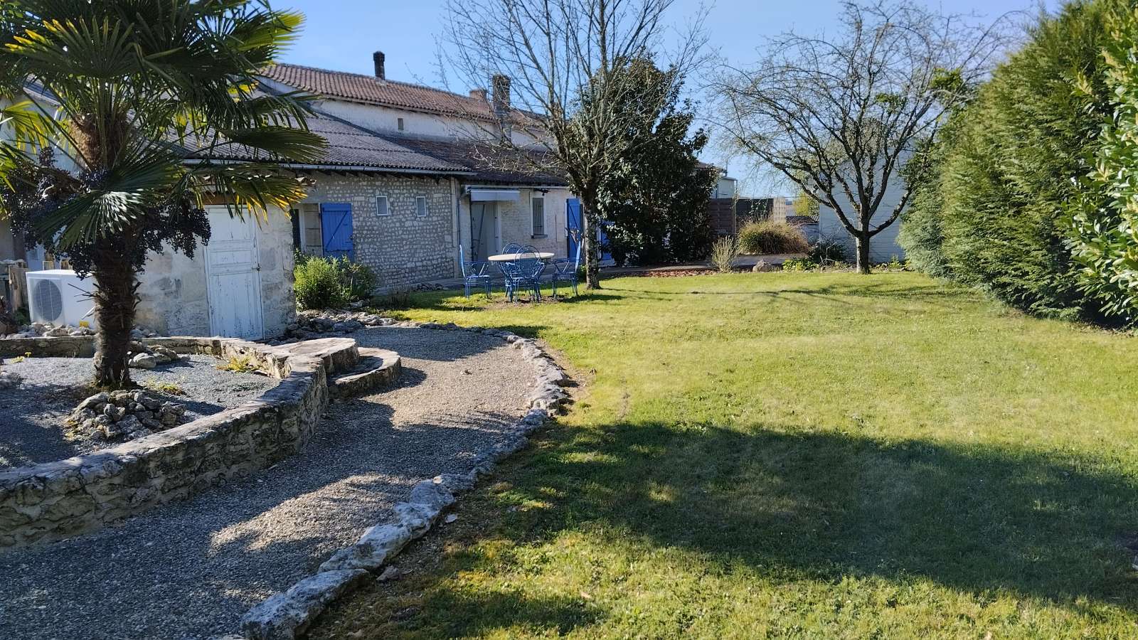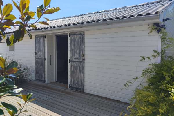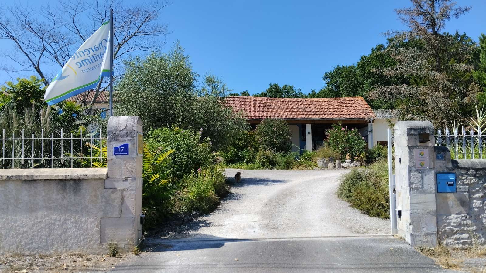 2 belles chambres d'hôtes au calme Le domaine la belle charentaise vous propose 2 belles chambres d'hôtes au calme sur un domaine fermé, avec piscine et abris voiture, au cœur d'un parc arboré et fleuri de près d'1 ha, avec piscine chauffée. - Chambre NATURE (20 m²) pour 2 personnes, équipée d'un lit de 160x190, d'un petit coin salon avec TV, d'une salle d'eau avec douche à l'italienne et d'une petite terrasse avec salon de jardin à l'extérieur. - Chambre OCEAN (40 m²) pour 5 personnes, équipée d'un lit de 160x190, d'une TV, d'un fauteuil, d'une salle d'eau avec cabine de douche au rez-de-chaussée, d'un lit de 140x190 et d'un lit de 90x190 au 1er étage, en mezzanine, et d'un salon de jardin à l'extérieur. Nos 3 chèvres et notre petit chien seront ravis de vous accueillir.