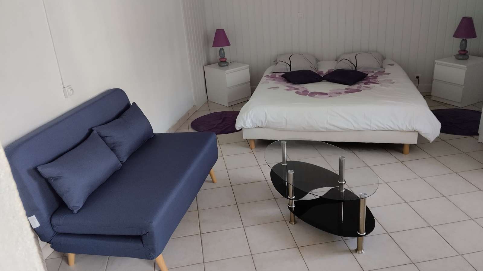 - d'un espace nuit équipé d'un lit de 160x190, de 2 tables de chevet avec lampes, d'une armoire/penderie, d'un canapé BZ ;