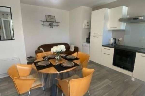 Résidence au calme sans vis à vis constituée de 4 gites. Gîte entièrement rénové de 50m2 avec 2 chambres, situé à 900m d’un espace commercial (Intermarché, magasin bio, boulanger, coiffeur, restaurant….) et à seulement 1.8 km des Thermes de Jonzac. Joliment décoré en style moderne, très pratique et convivial, se déclinant ainsi : - une 1ère chambre de 14 m2 avec un lit de 160 - une 2ème chambre de 13 m2 avec un lit de 160 - une salle d'eau avec une douche et rangement - une pièce de vie avec une cuisine tout équipée Vos moments de détente seront ensoleillés sur votre terrasse privée avec chaises longues, donnant sur un grand jardin collectif avec barbecue. Bienvenue à vous ! Possibilité de louer également 3 autres gites dans la propriété.