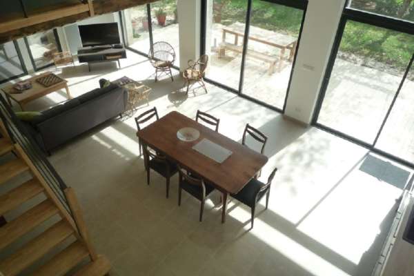 Il comprend un séjour de 48 m² avec bel espace cuisine aménagée , une mezzanine de 12 m², deux chambre de 10 m² , une salle d'eau avec douche. un WC séparé.