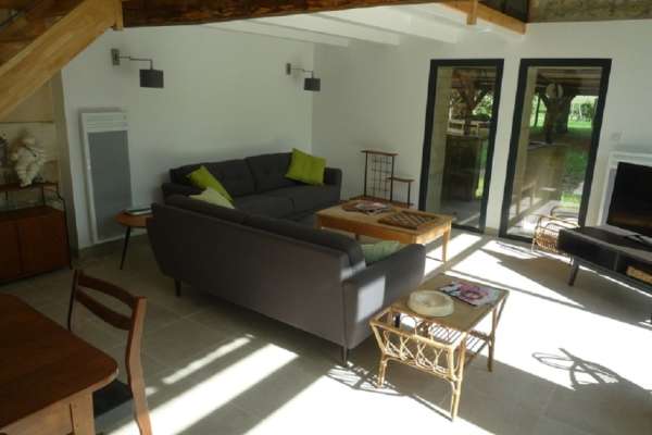 Au milieu des vignes, entre verger et petit bois de chêne, dans une ancienne ferme viticole, Logement de 90m² pour 4 personnes maximum. 900 m des thermes de Jonzac, 4 étoiles, tout confort, situé à Jonzac 17550 dans un milieu très calme au cadre agréable. Il comprend un séjour de 48 m² avec bel espace cuisine aménagée , une mezzanine de 12 m², deux chambre de 10 m² , une salle d'eau avec douche. un WC séparé. Il comprend, par ailleurs, un espace buanderie attenant à l'appartement, à partager avec un second logement Équipements : four, lave vaisselle, micro-onde, réfrigérateur/congélateur, lave linge, cafetière, grill pain, bouilloire, table et fer à repasser, aspirateur, petit électro ménager, vaisselle pour 4 personnes WIFI, TV écran plat, TNT, Parking privé / cour Terrasse avec table, bancs, chaises, parasol Les animaux ne sont pas admis dans le logement A JONZAC, ville thermale, vous trouverez tous les commerces et services nécessaires, mais aussi une offre importante de loisirs, d'activités de détente ou de découvertes culturelles auprès de l'office de tourisme de la ville Le meublé est situé à : 900 mètres des thermes, 2.5 Km du centre ville de Jonzac, du complexe aquatique "les antilles de Jonzac", de la base de loisirs, du casino,... 35 km Saintes et Cognac, 100km Bordeaux, la Rochelle, Angoulême, 55 km de la côte atlantique (Royan, la Palmyre). Possibilité ménage fin de séjour et Possibilité de louer le linge de toilette et les draps