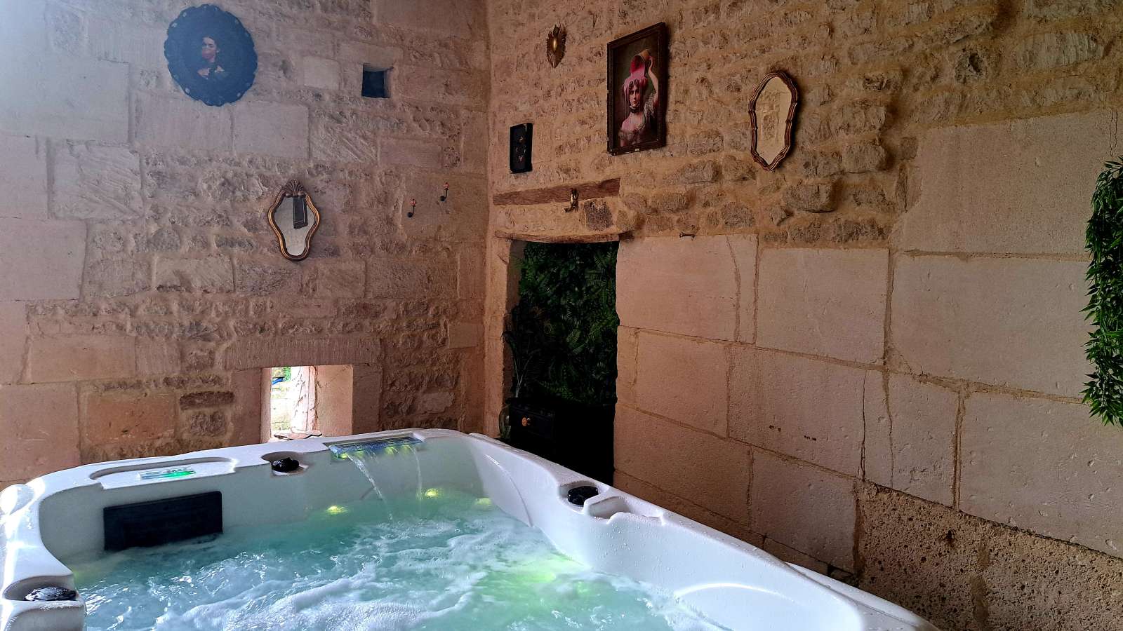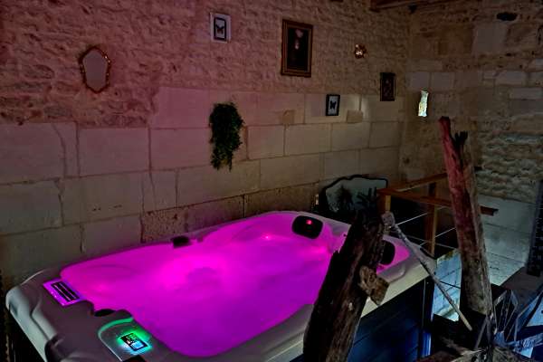 Gîte insolite avec Spa privatif dans un ancien moulin à eau Vivez une expérience unique dans un moulin à eau avec spa privatif ! Offrez vous une nuit inoubliable dans le Logis du Meunier, un lieu chargé d'histoire et de charme, parfait pour une escapade romantique à deux. Vous pourrez y admirer les engrenages et meules qui servirent autrefois à produire de la farine et de l'huile de noix, mais surtout profitez d'un moment incroyable et insolite dans votre spa privatif. Vous pourrez vous prélasser dans le spa, bercé par le bruit de la rivière tout en admirant la roue du moulin, véritable témoin du passé qui a animé le moulin. Le spa vous est accessible en illimité toute la durée de votre séjour. Profitez d'un moment de bien-être dans notre spa qui vous propose 2 places allongées avec de nombreux jets d'eau et d'air et chromothérapie. Le Logis du Meunier est également composé d'une pièce de vie avec coin cuisine et repas, d'un poêle à bois avec bois fourni gratuitement pour une ambiance chaleureuse et cocooning, d'une chambre confortable avec un lit 160x190, d'une salle d'eau avec WC ainsi qu'une cour privative avec barbecue, idéal pour des repas en plein air. Le linge de lit, de toilette ainsi que les peignoirs et les chaussons pour le spa vous sont fournis sans supplément. Le petit déjeuner est offert. Pour rendre votre séjour encore plus spécial, nous vous offrons la possibilité de commander : > Un panier apéro pour savourer des délices locaux > Un pack romantique pour surprendre votre moitié > Des boissons alcoolisées ou soft pour accompagner vos moments de détente > Un bouquet de fleurs pour ajouter une touche de romance à votre séjour ou pour célébrer un anniversaire Venez découvrir la magie de cet endroit unique, où le passé rencontre le présent. Réservez dès maintenant votre séjour et créez des souvenirs inoubliables ! NB: Le Logis du Meunier peut être difficile d'accès pour les personnes ayant des problèmes de mobilité de par ses escaliers.