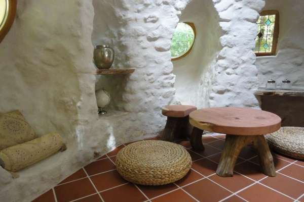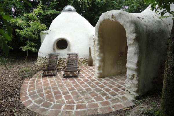 La Ker-Terre de Flo est un habitat bulle en torchis. Sa forme s'intègre parfaitement dans son environnement. La douceur des formes arrondies et le façonnage à la main procure l'apaisement et harmonise l'intérieur de l'habitat. Loin de nos classiques habitats à angles droits, les énergies peuvent circuler librement. La première bulle accueille un petit salon en séquoia, idéal pour prendre le petit déjeuner. Empruntez le petit tunnel pour aller vous lover dans les coussins de cette petite chambre cosy et romantique. Profitez de la terrasse, installez-vous dans les bains de soleil pour boire un verre et lire un bon livre. La Ker-Terre est équipée de toilettes sèches mais votre clef vous donne accès à une salle d'eau privative où vous pourrez laisser vos affaires de toilettes. Le petit déjeuner pour 2 personnes est compris. Votre panier sera déposé à l'entrée de la Ker-Terre à l'heure de votre choix et vous trouverez à l'intérieur (par personne) : du café, du thé ou du chocolat, un jus de fruits, un yaourt BIO, une demi-baguette, du beurre, de la confiture maison et un fruit.