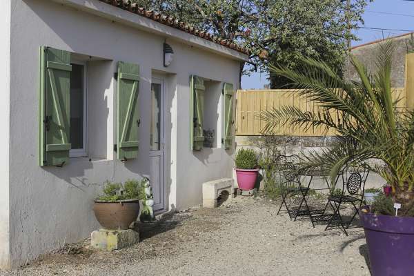 Ancienne maison des vendangeurs de plain pied de 20m2 rénovée. Située à 3km de la zone commerciale de Jonzac, 5km de la cure thermale et à 6km du centre aquatique et de remise en forme "Les Antilles". Les premières plages sont à moins d'une heure de route. Parking gratuit. Au domaine, il y a autre gîte "Le gîte bleu" d'une capacité de 5-6 personnes avec climatisation. Le logement est équipé d'une salle d'eau avec douche, wc et lavabo, une chambre avec un lit double (140) et d'une pièce ouverte avec cuisine équipée et télévision. À l'extérieur vous trouverez un parking gratuit, une terrasse avec bain de soleil et une table avec chaises où vous pourrez prendre vos repas et profiter d'une vue sur un parc avec chevaux. Les animaux sont acceptés sur demande et au nombre de 1 seul. Le logement n'a pas de climatisation.