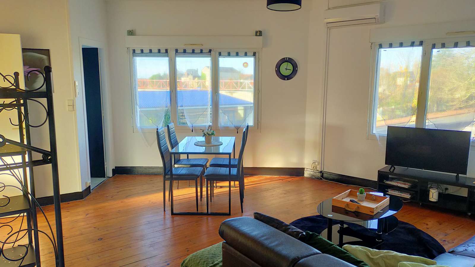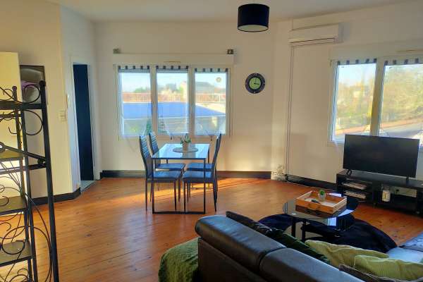 Appartement de 79 m² situé au première étage indépendant et isolé, situé à 500 mètres de la cure Grand appartement de 79 m² situé à 500 mètre de la cure (à pied 6 minutes). très lumineux, deux chambres avec lit de 160 + 1 bureau Douche hydromassante, climatisation, wifi, tv plat 80 cm dans le salon, Cuisine séparé avec machine à café Senseo, bouilloire, grille pain, micro onde, cuisinière à gaz...