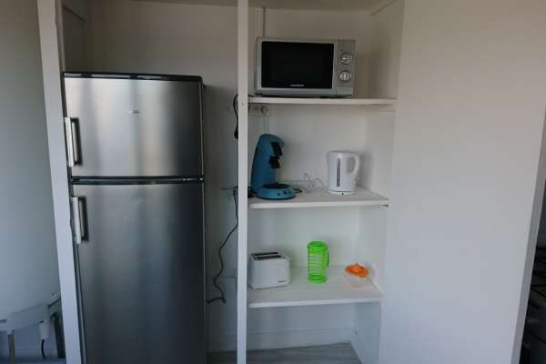 Douche hydromassante, climatisation, wifi, tv plat 80 cm dans le salon, Cuisine séparé avec machine à café Senseo, bouilloire, grille pain, micro onde, cuisinière à gaz...