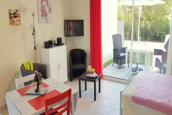 Les studios vous offrent un habitat des plus confortables et particulièrement soigné avec cuisine intégrée toute équipée, grande douche à l’italienne, literie confort, WIFI, climatisation réversible…une terrasse individuelle sans aucun vis-à-vis permet de profiter pleinement des belles journées à Jonzac.