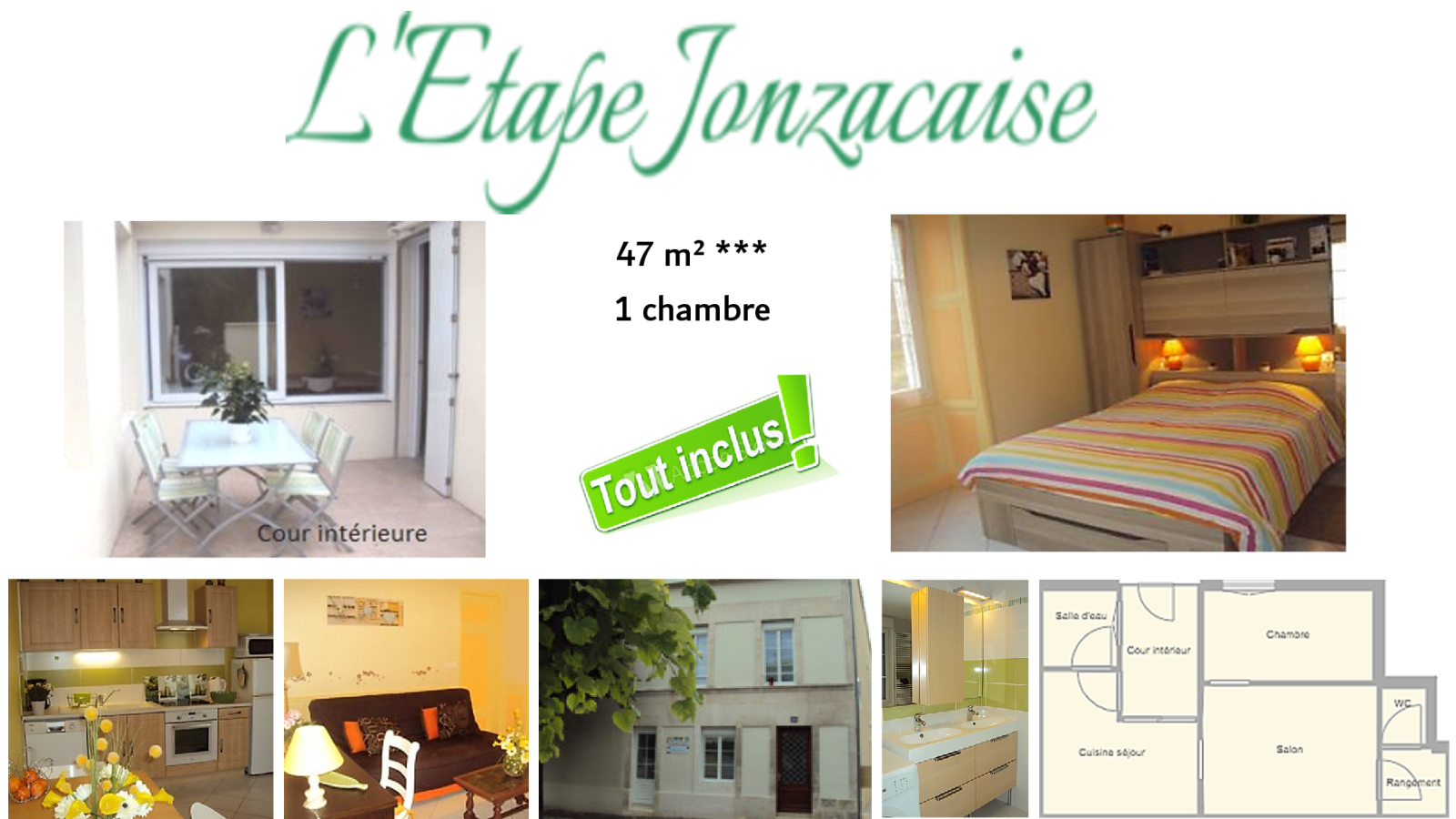 Logement 2 personnes récemment rénové, tout confort et tout inclus (linge de lit et de maison pour 2 personnes ainsi que le ménage de fin de séjour sont inclus.) Grâce à son exposition plein sud, ce logement se démarque par sa luminosité, grande baie vitrée et fenêtres y laissant entrer généreusement le soleil. Sa situation à l'extrémité de la maison, en fond d'impasse favorise la tranquillité. Durant les beux jours, vous pouvez prendre vos repas à l'extérieur, à l'ombre d'un grand store ban exposé plein sud. Cet appartement de plain-pied est disposé en forme de "U" autour d'une petite cour fermée de 12m2. Ce meublé est idéal pour les séjours en couple et ses équipements garantissent un très bon confort. A 1km des Thermes, à 300m du centre ville et à 1.7km du centre aqualudique des "Antilles de JOnzac", vous êtes assurés de passer un bon séjour. Inclus : service d'une société de conciergerie - Linge de lit et de maison pour 2 personnes. (lit fait à votre arrivée) - Navette privée de votre logement à la gare de Jonzac le jour de votre arrivée et celui de votre départ