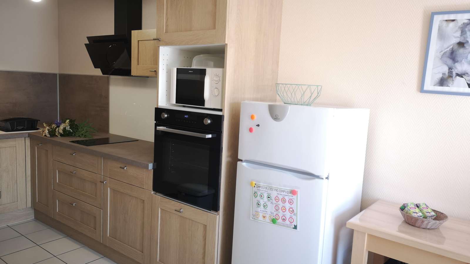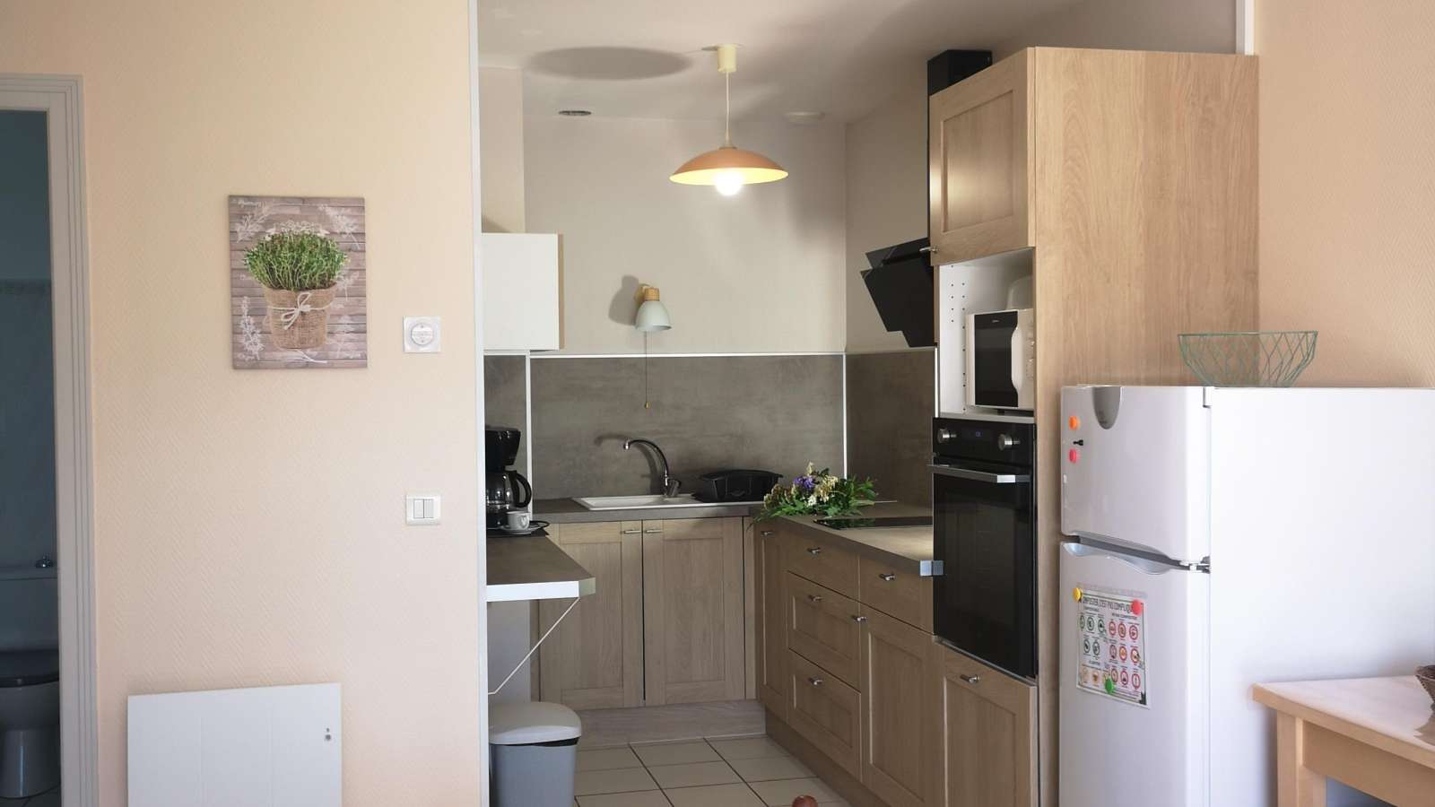 Comprenant un coin cuisine équipé avec entre autres un four, un micro-ondes, une cafetière, une télévision, un canapé, deux chambres avec chacune un lit de 140.