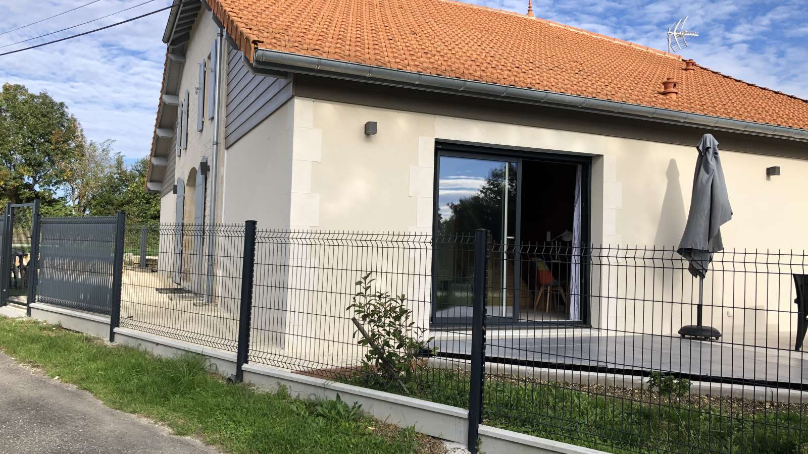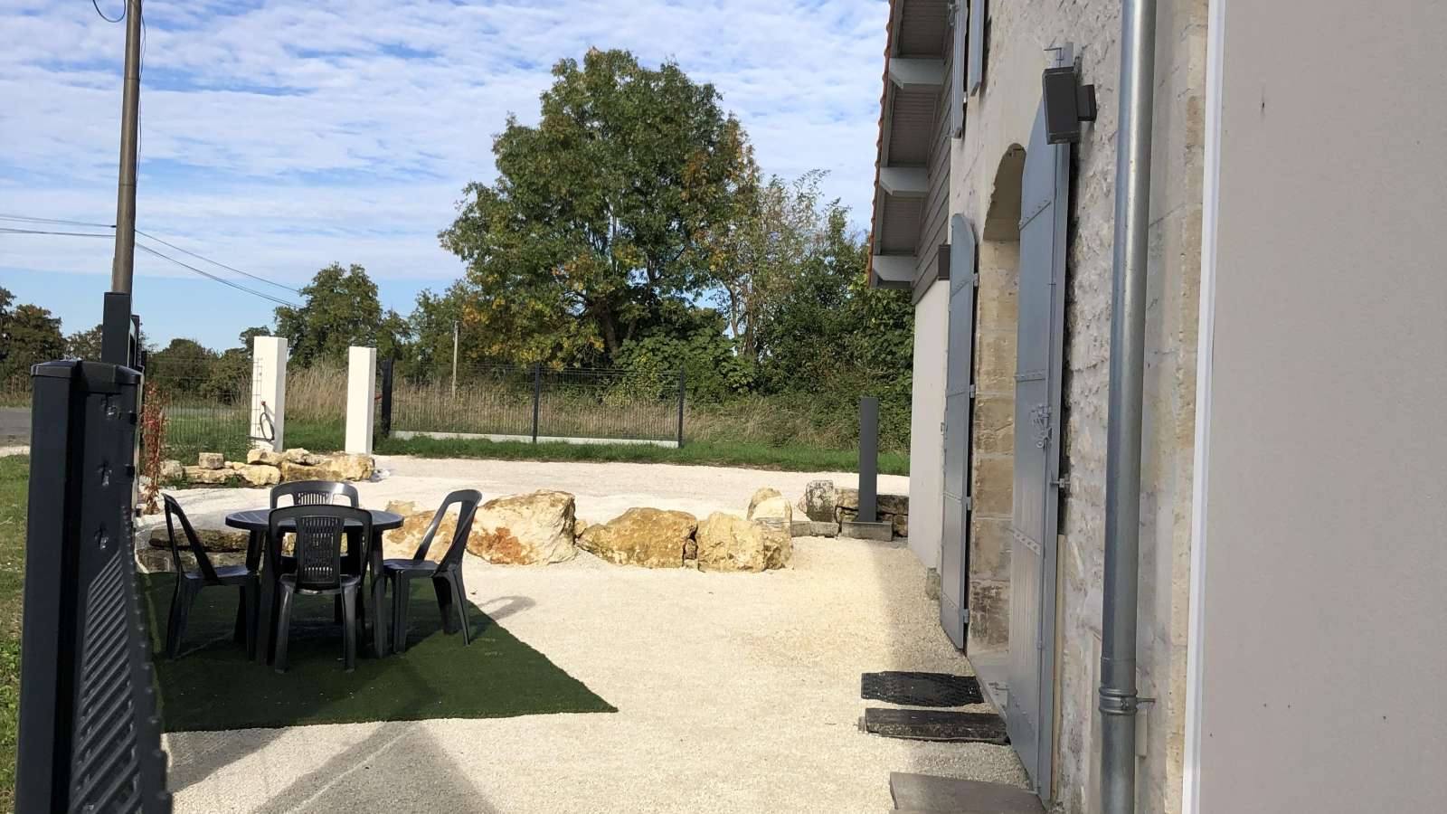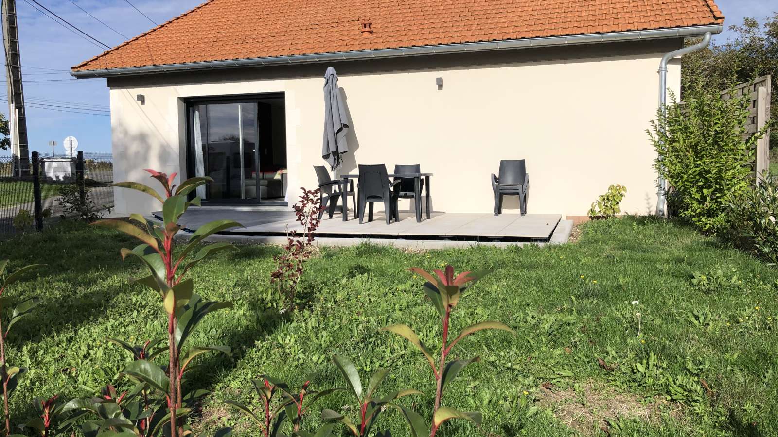 A l'extérieur, vous avez un parking privatif partiellement clos, donnant sur une court qui donne accès au gite. Ensuite sur le devant du jardin devant la baie vitrée, une terrasse ensoleillée, avec transats, plancha, barnum, parasol. Le jardin vous permettra de profiter de la campagne et du calme. Une borne de recharge pour véhicule électrique est aussi à votre disposition. Les animaux sont les bienvenus gratuitement.