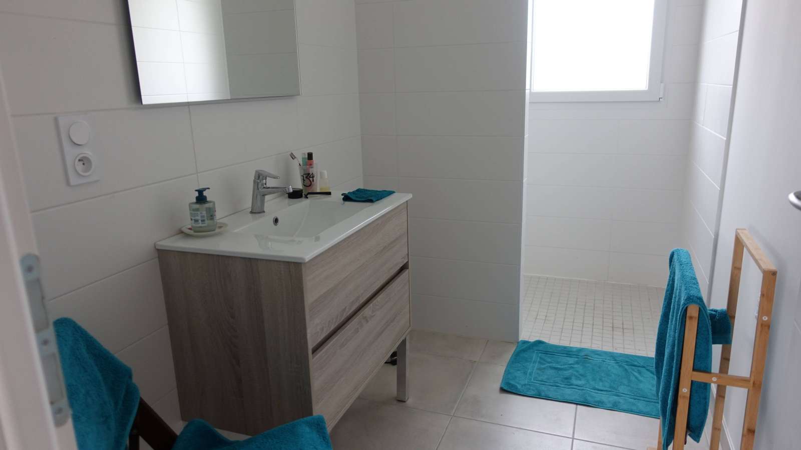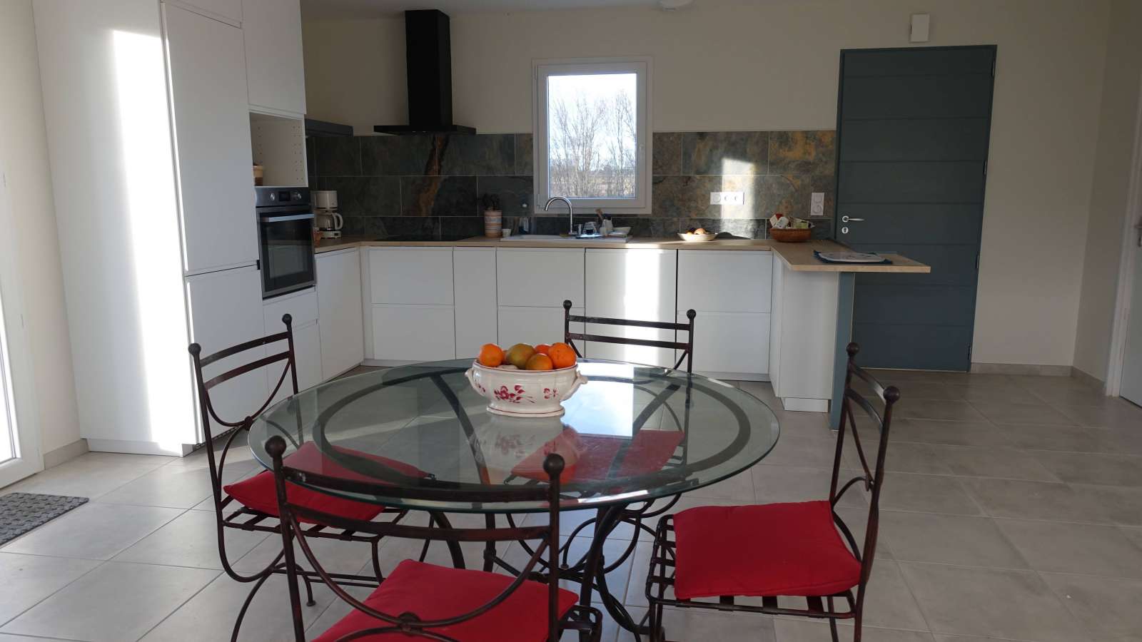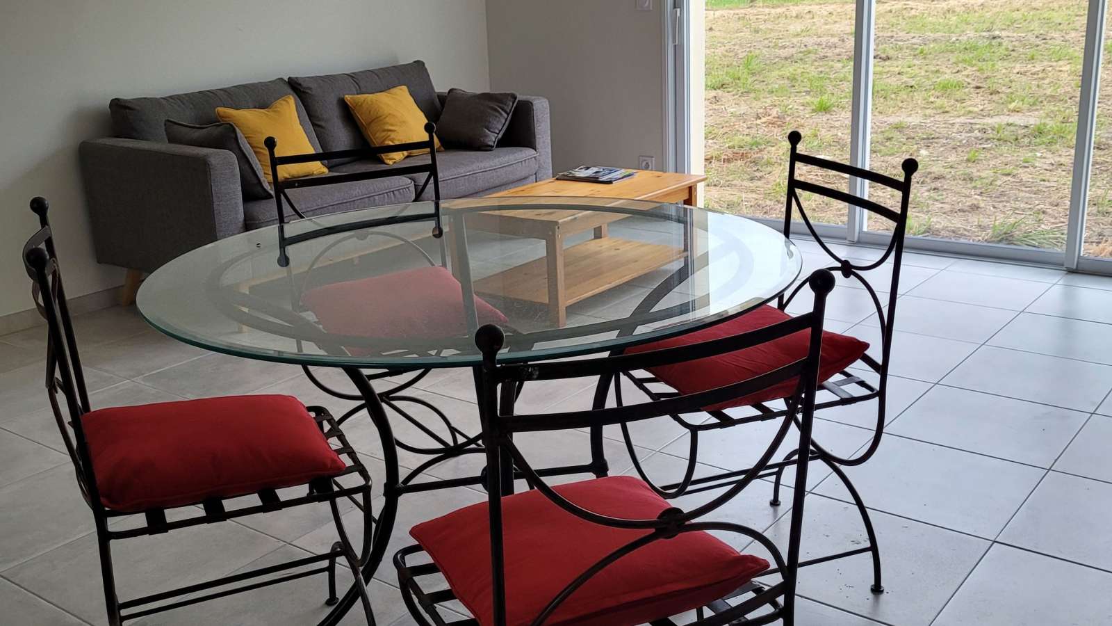 La maison se situe dans un environnement calme et paisible. A proximité immédiate de l'accès d'autoroute A10 et des commerces. Proches des lieux touristiques de l'Estuaire de la Gironde et des thermes de Jonzac. Maison neuve de 90m² vous offre une vaste pièce à vivre avec une cuisine américaine équipée et 3 chambres.