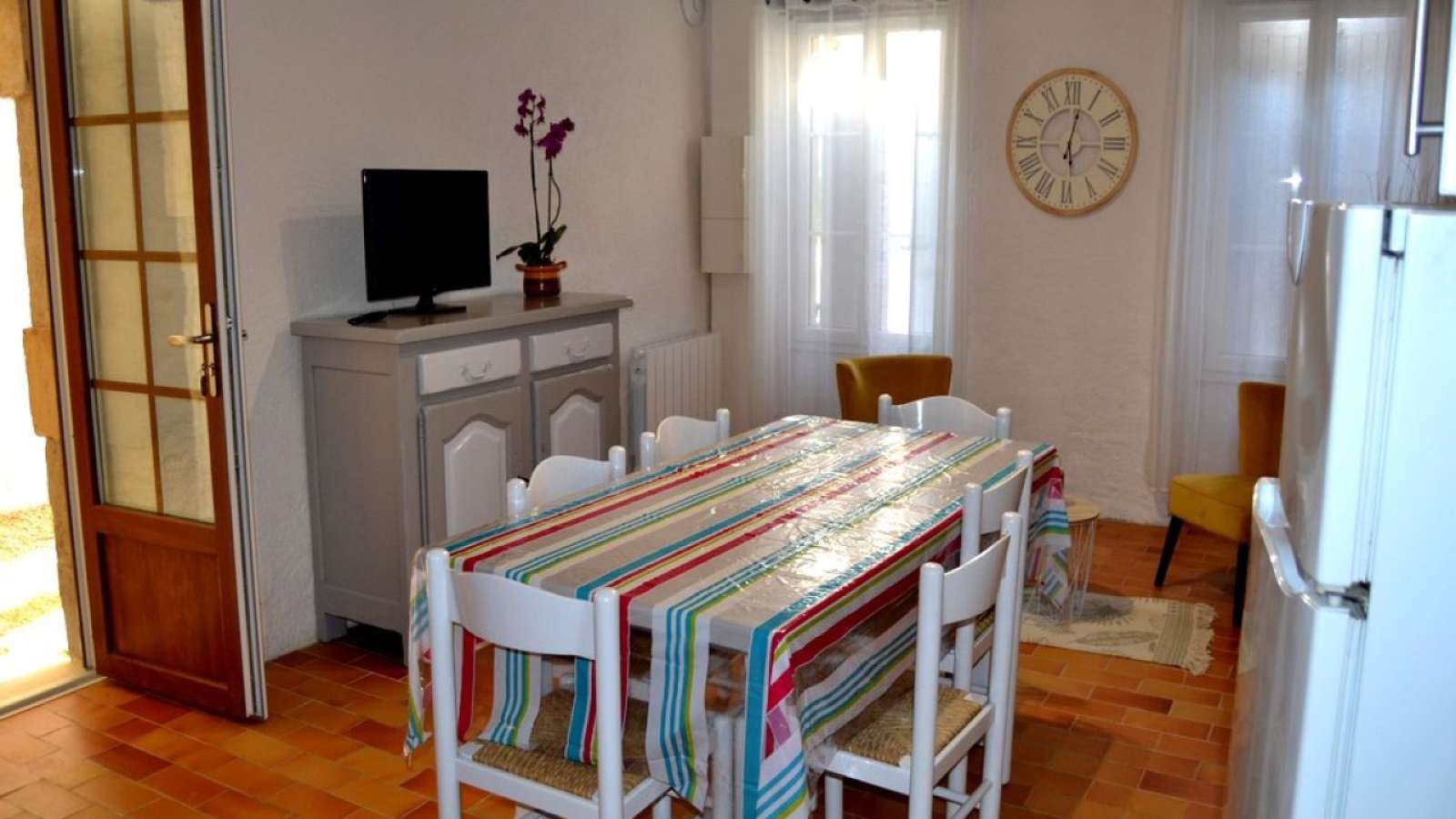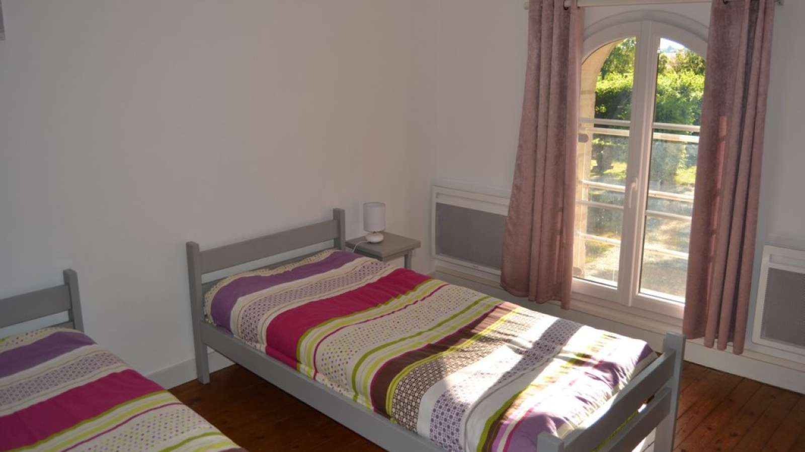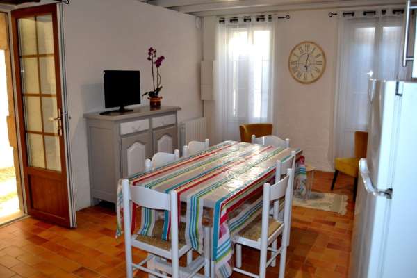 Gîte au rez-de-chaussée et à l'étage comprenant au rez-de-chaussée une cuisine équipée avec entre autres un micro-ondes, un four, une cafetière, un salon avec télévision, à l'étage deux chambres l'une avec un lit de 140, l'autre avec trois lits de 90.