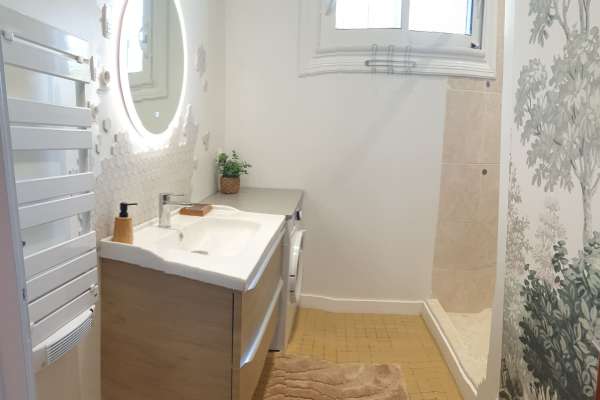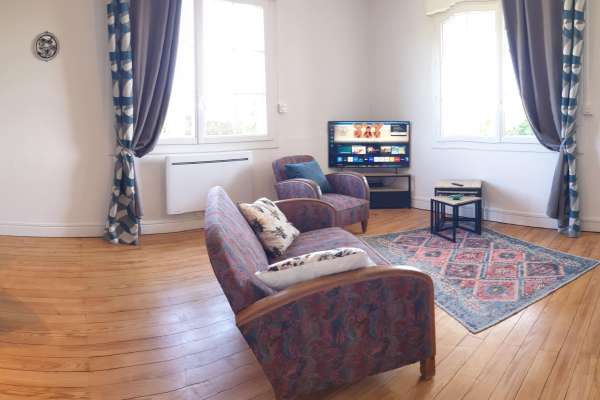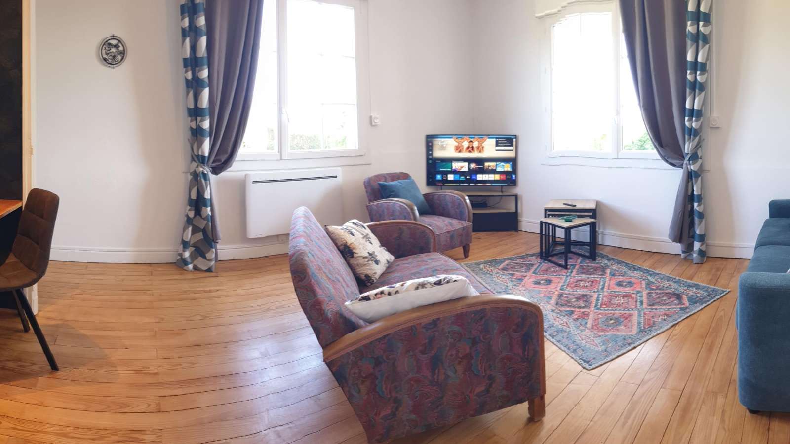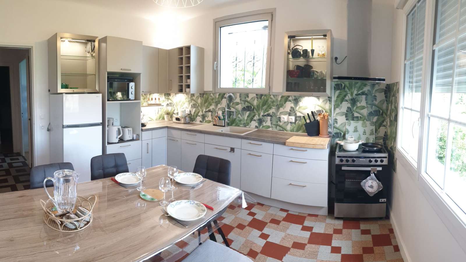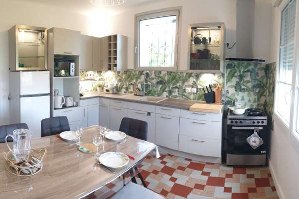 Maison entièrement restaurée à neuf, parking privé. Trois grandes chambres, recharge véhicule, tout confort (83m²) 6 pers max. linge fourni, lits faits à l'arrivée.