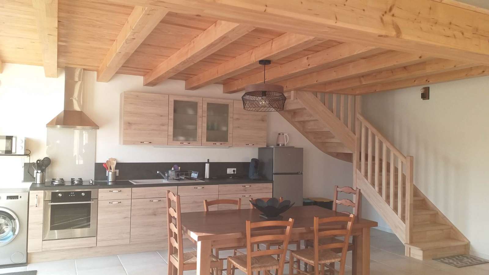 1 cuisine avec coin repas, salon, salle de bain et WC séparé