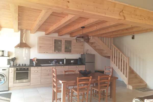 Gîte touristique de charme à la campagne proche de la cure thermale. Maison de charme de 78 m² avec une petite terrasse et coin jardin 1 cuisine avec coin repas, salon, salle de bain et WC séparé 1 chambre au RDC avec un lit de 160x200 et 1 chambre à l’étage avec 2 lits de 90x200