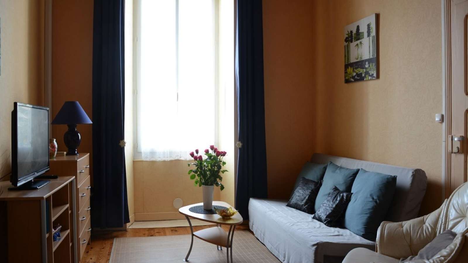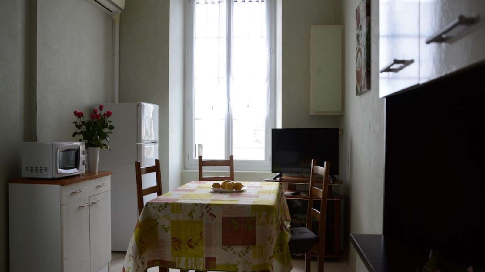 Appartement au rez-de-chaussée situé à 400m des Thermes, à 1km du centre-ville et à 2km du centre aqualudique des "Antilles de Jonzac" Comprenant une cuisine indépendante équipée avec entre autres une gazinière, un micro-ondes, un séjour avec télévision, un canapé, une chambre avec un lit de 140, une télévision et accès Wifi.
