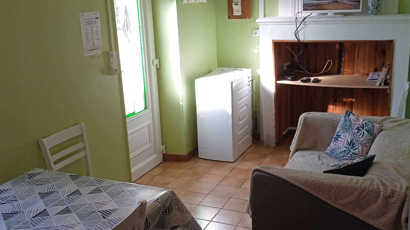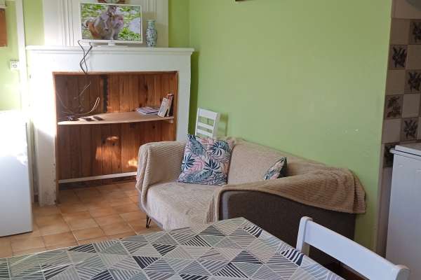 La pièce de vie, salle d'eau et sanitaires se situent au rez-de-chaussée, les chambres sont à l'étage.