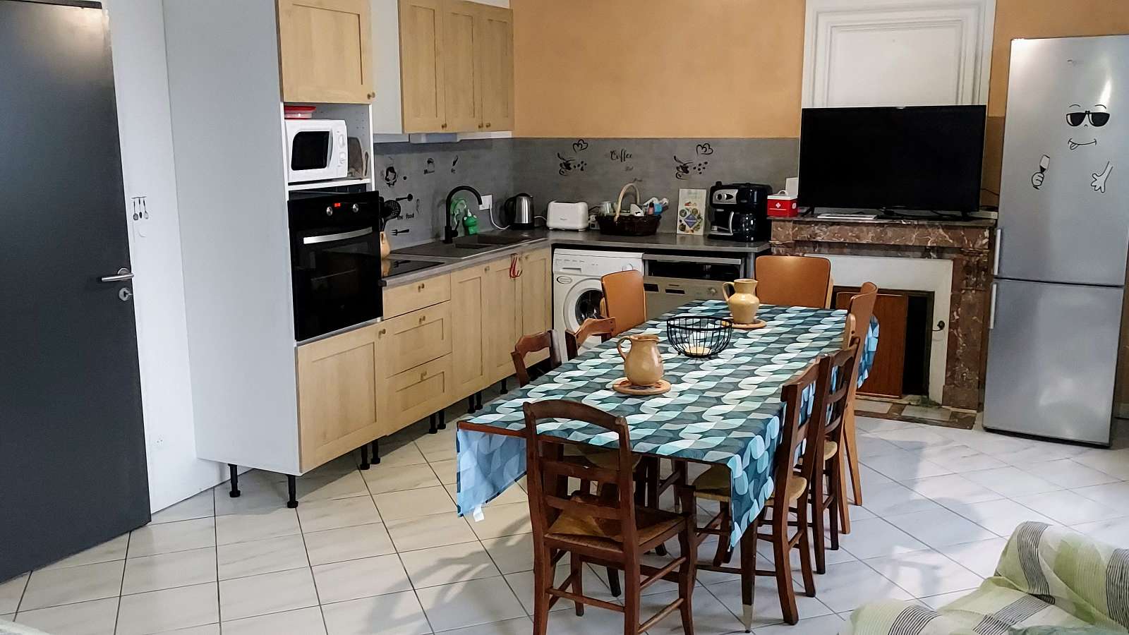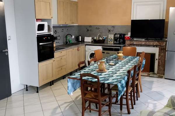 La cuisine équipée comprend tout le nécessaire pour préparer vos repas : four, plaque à gaz, réfrigérateur, congélateur et vaisselle complète.
