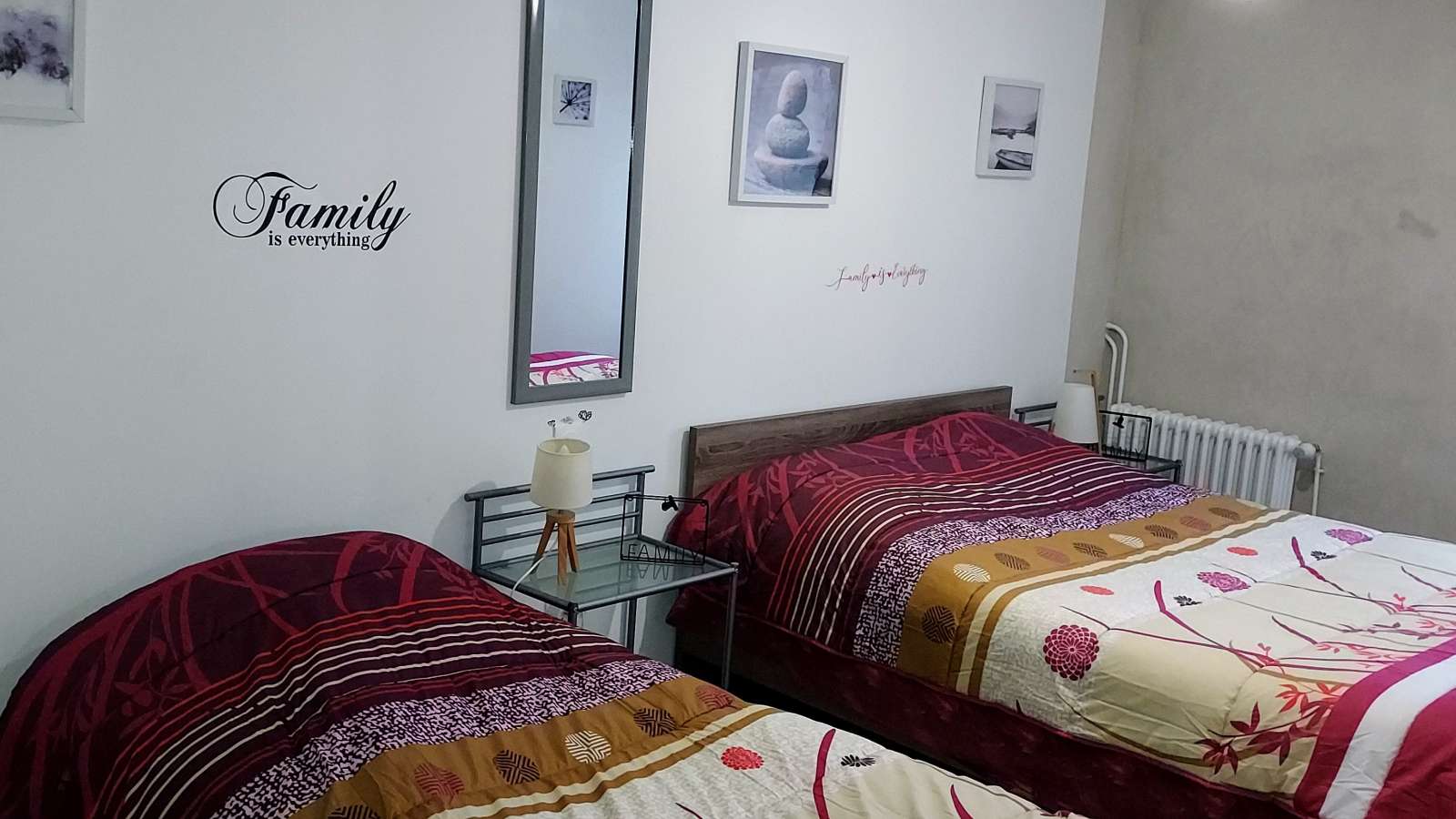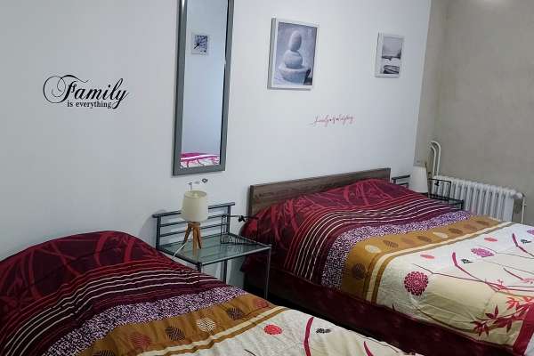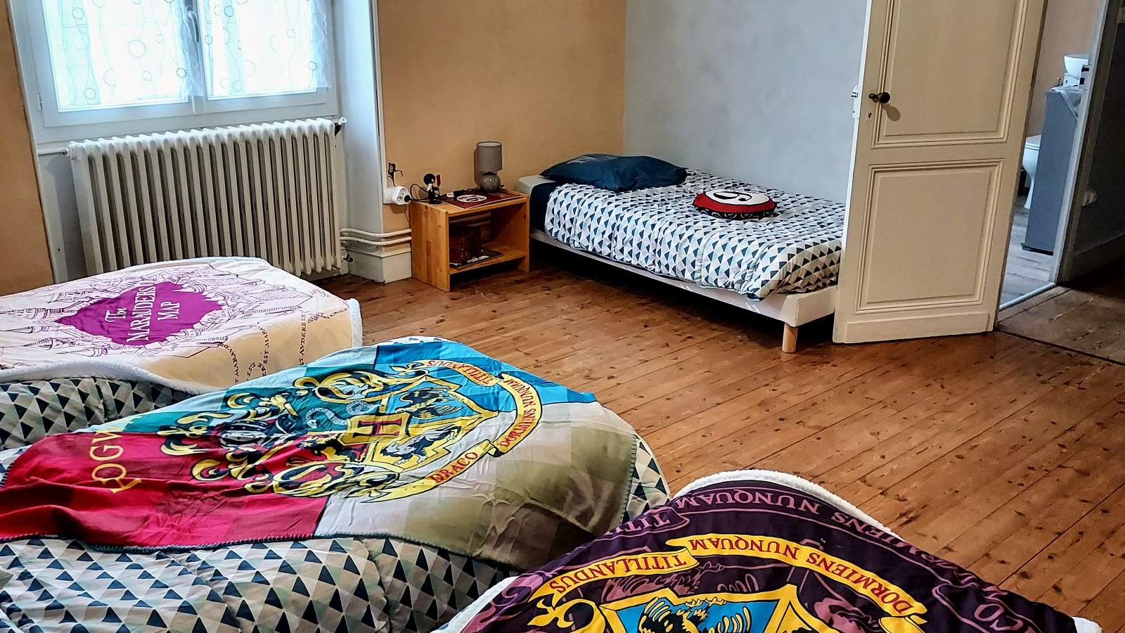 3 chambres avec un lit double (140x200 cm), 1 chambre avec deux lits simples (90x190 cm), 1 chambre familiale avec quatre lits simples (90x190 cm), 1 chambre mixte avec un lit double (140x200 cm) et un lit simple (90x190 cm).