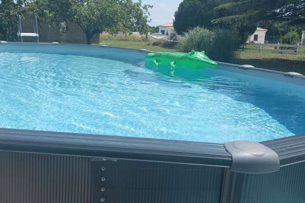 Plongez dans la piscine hors-sol située au cœur d'un jardin arboré de 2 000 m², parfait pour se ressourcer en pleine nature.