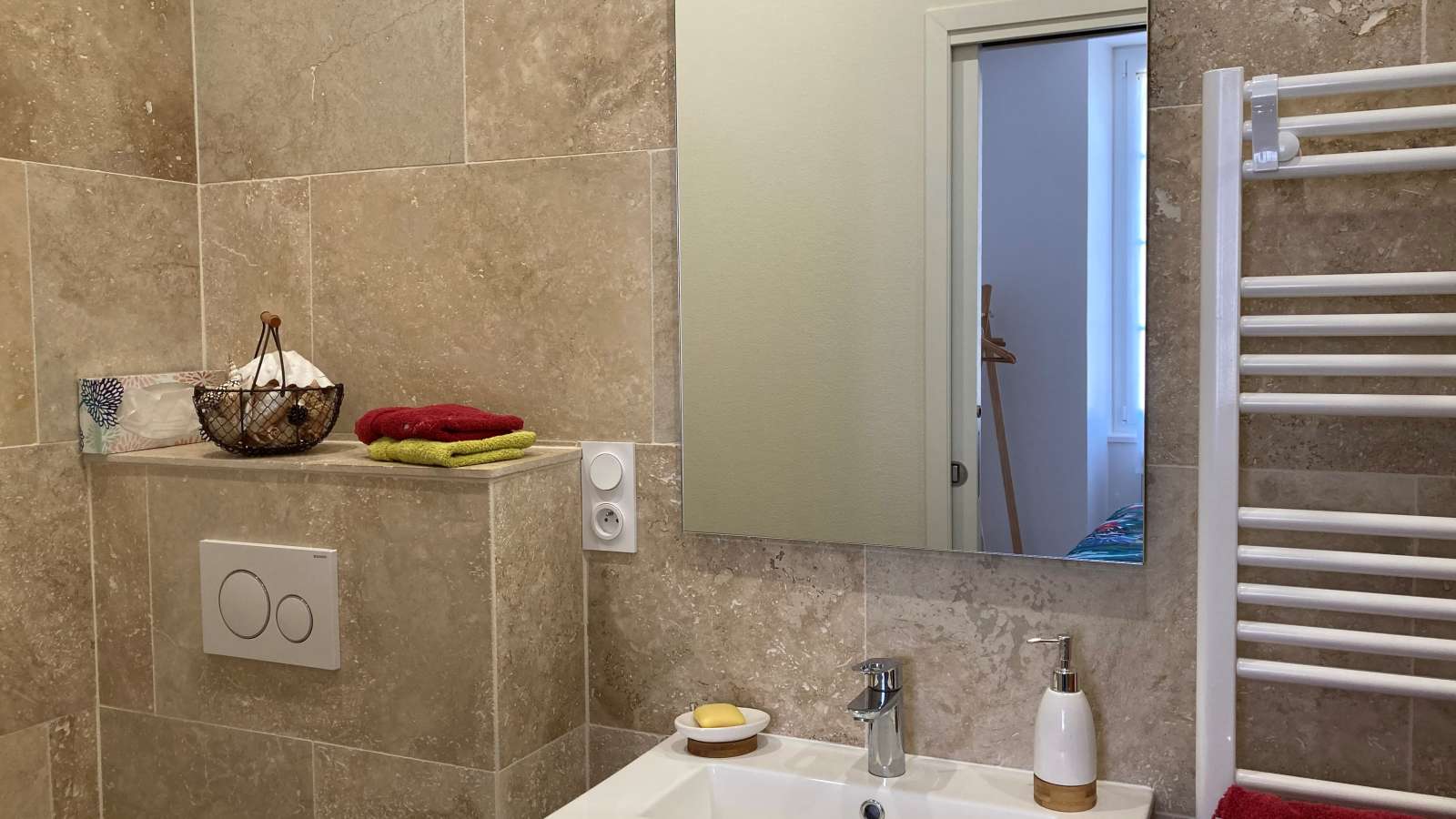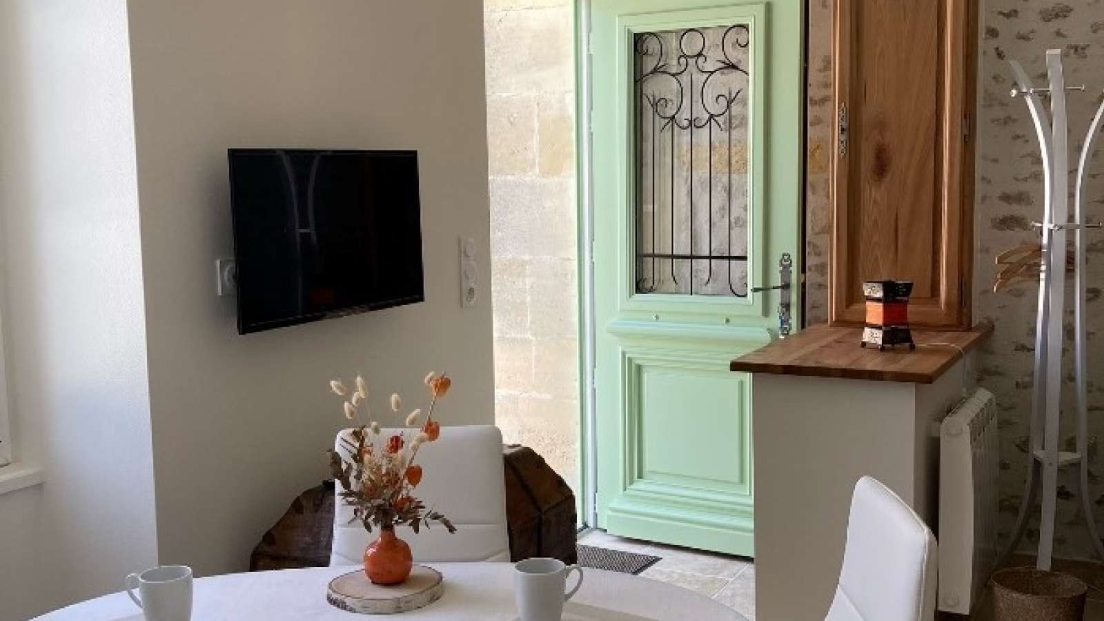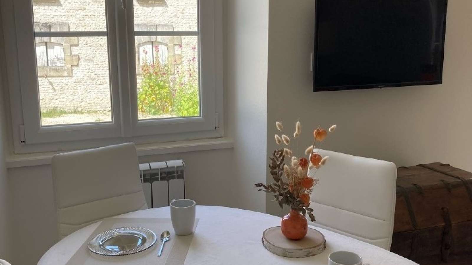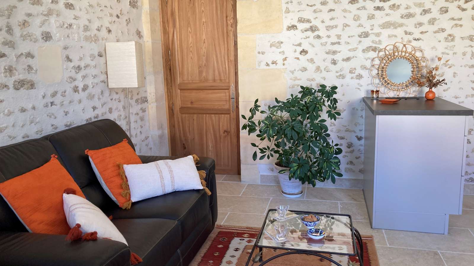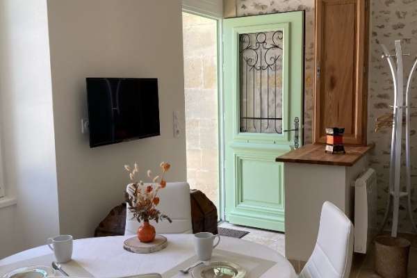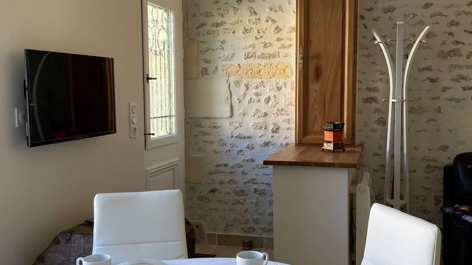 Refait à neuf en 2022, cet hébergement se situe dans une partie de la maison de maître de la propriétaire. Tout le confort nécessaire est présent pour l'accueil d'un couple pendant votre séjour au coeur de la Haute Saintonge. La location est accessible depuis la grande cour de ferme par un escalier de pierre. Agréable terrasse carrelée vue sur cour, levant et couchant. L'entrée se fait directement dans la pièce de vie. Côté nuit, vous attendent un lit "Queensize" grand confort et la salle d'eau attenante avec douche à l'italienne.