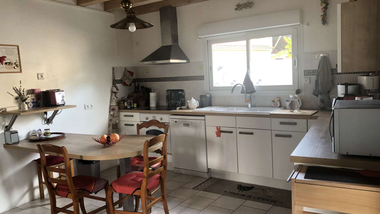 Maison comprenant une cuisine équipée avec véranda attenante, salon-séjour, deux chambres dont une à l'étage, une salle de bains, WC.